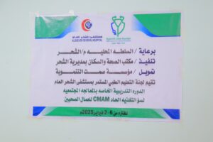 و يشهد البرنامج تنفيذ دورات تدريبية عدد لعدد 22 من الكوادر الصحية العاملة في المستشفيات و المراكز الصحية والعمل على كيفية اكتشاف حالات سوء التغذية المبكر و مراقبتها و معالجتها بشكل مستمر ، و كما يتخلل التدريب على تطبيقات عملية و محاضرات تقدمها الدكتورة بشرى بخضر.