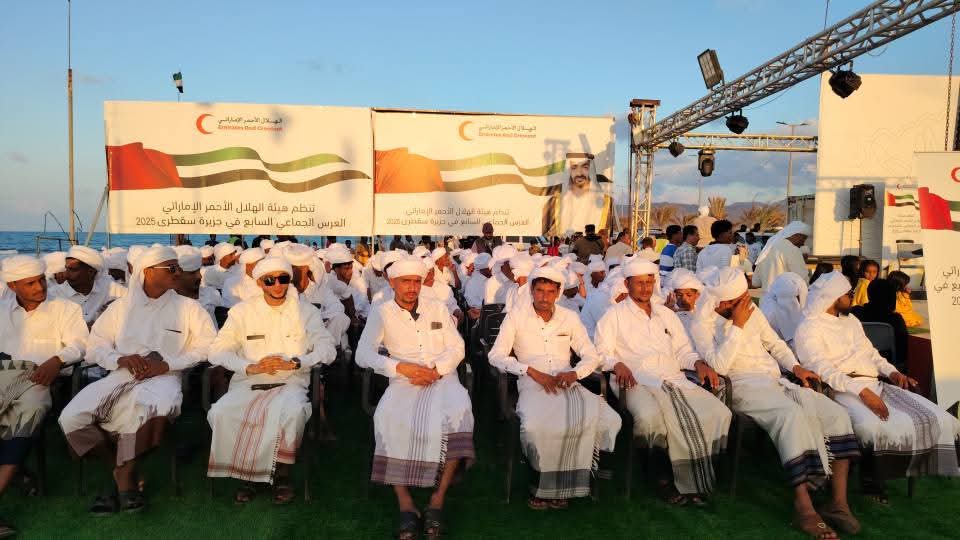 كما شهد ختام المهرجان، إقامة العرس الجماعي السابع بمبادرة من هيئة الهلال الأحمر الإماراتي وبدعم كريم من دولة الإمارات العربية المتحدة الشقيقة، حيث استهدف هذا العرس المميز 200 شاب وشابة من أبناء سقطرى، وذلك بهدف تخفيف الأعباء المالية المرتبطة بتكاليف الزواج وتوفير بيئة مناسبة للشباب للبداية في حياتهم الزوجية.