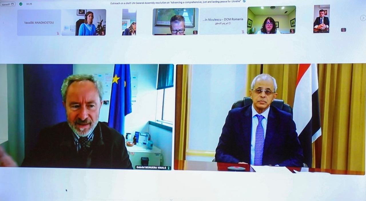 كما جري خلال اتصال مرئي أجراه نائب الوزير مع سفراء الاتحاد الأوروبي، استعراض آفاق التعاون المشترك في مختلف المجالات، والتطورات على الساحة الوطنية والإقليمية.