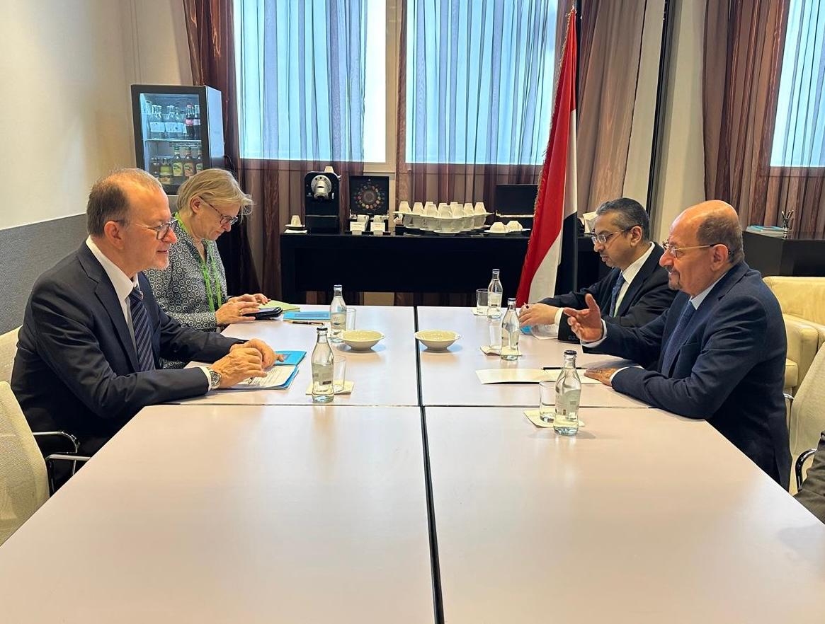 حضر اللقاء، سفير اليمن لدى جمهورية المانيا الإتحادية، لؤي الارياني، والسكرتير الخاص لوزير الخارجية، المستشار سالم باعفي.