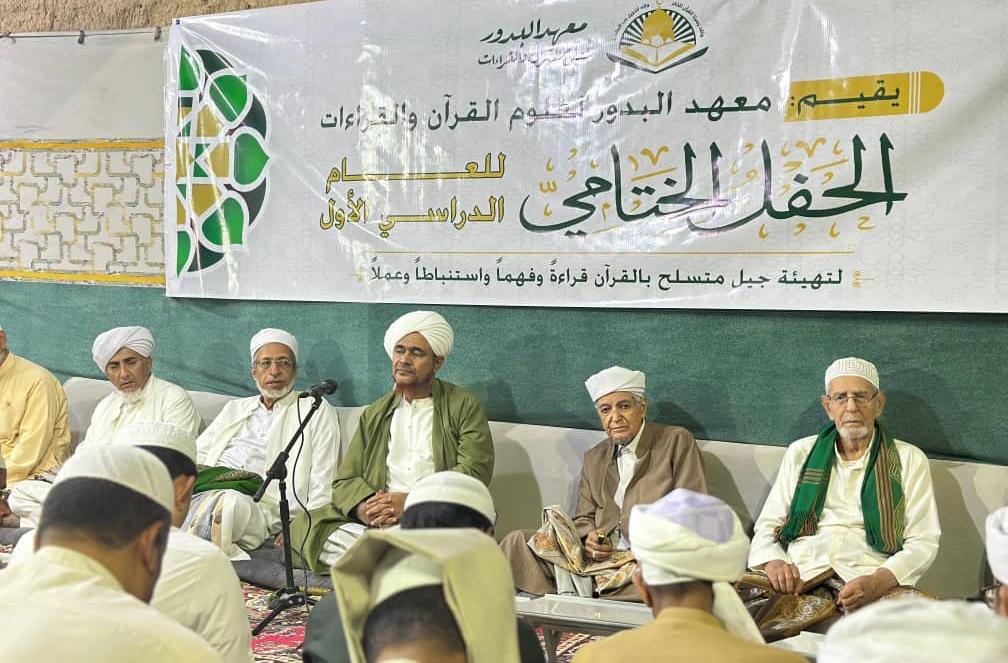 في أجواء من البهجة والاحتفاء نظم معهد البدور لعلوم القرآن والقراءات بمدينة تريم الحفل الختامي للعام الدراسي الأول مساء يوم الأربعاء 13 شعبان 1446هـ، بحضور نخبة من العلماء والأعيان من داخل تريم وخارجها، إلى جانب شيخ الحارة.