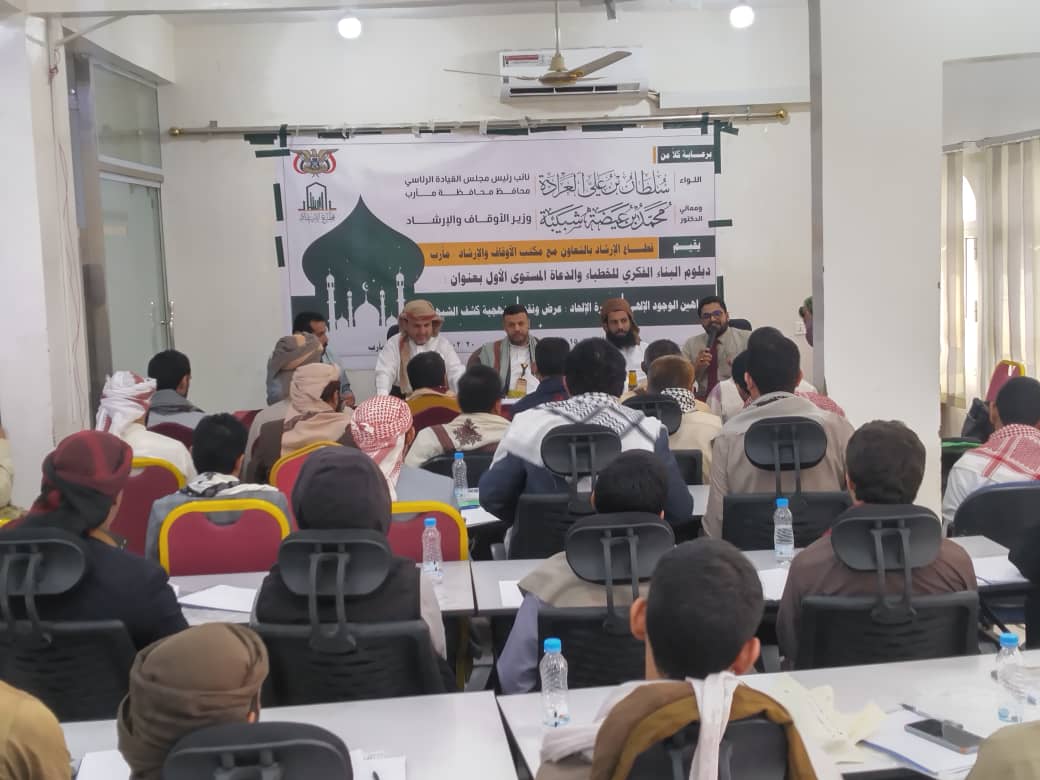 دشن اليوم، في محافظة مأرب، فعاليات برنامج دبلوم البناء الفكري للخطباء والدعاة (المستوى الأول)، والذي ينفذه قطاع الإرشاد بوزارة الأوقاف بالتعاون مع مكتب الوزارة بالمحافظة لعدد 65 مشاركاً من الخطباء والدعاة والمرشدين.