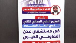 هذا، ويهدف المخيم الطبي إلى تقديم خدمات طبية متقدمة ومجانية لمرضى المخ والأعصاب والعمود الفقري من ذوي الدخل المحدود، في ظل الحاجة المتزايدة لهذه التخصصات الدقيقة، وتعزيز الجهود الإنسانية لدعم القطاع الصحي في عدن.