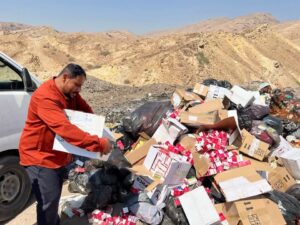 في إطار جهودها المستمرة لحماية صحة المواطنين وضمان سلامة المنتجات الطبية في الأسواق، أتلفت نيابة الصناعة والتجارة بمحافظة حضرموت، اليوم، كمية من الأدوية منتهية الصلاحية، إضافة إلى أخرى لم يتم تخزينها وفقًا للمواصفات المعتمدة من قبل الهيئة العليا للأدوية والمستلزمات الطبية.
