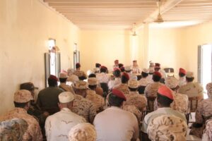 وتحدث بعد ذلك نائب قائد العمليات بقوة حماية الشركات الرائد عبدالله باوزير، بكلمة شكر من خلالها فريق مكتب التوجيه المعنوي بالقيادة والسيطرة على مايقومون به من جهود جبارة في تثقيف وتوعية الأفراد في السلك العسكري.