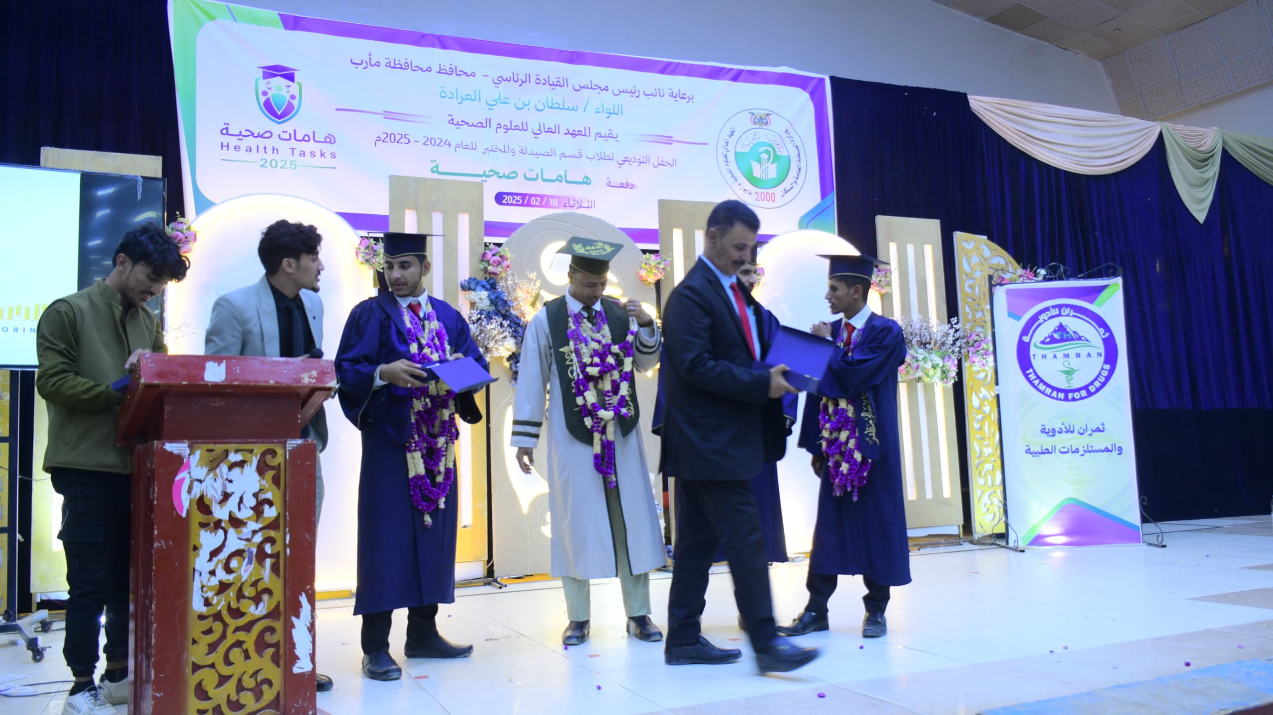 احتفل المعهد العالي للعلوم الصحية بمحافظة مأرب، اليوم، بتخريج 57 طالباً وطالبة من قسمي المختبرات والصيدلة مساق دبلوم عالي للعام 2024 – 2025م.