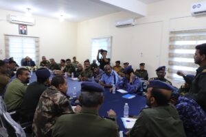 واطلع المحافظ خلال اللقاء الأمني الموسع لقادة الوحدات والمصالح والمديريات، على مستوى تنفيذ الخطط الأمنية لعام 2025م، والدراسات التقويمية للعمل الأمني للعام الماضي 2024م، وسُبل تعزيز الأداء وتنسيق الجهود الأمنية.