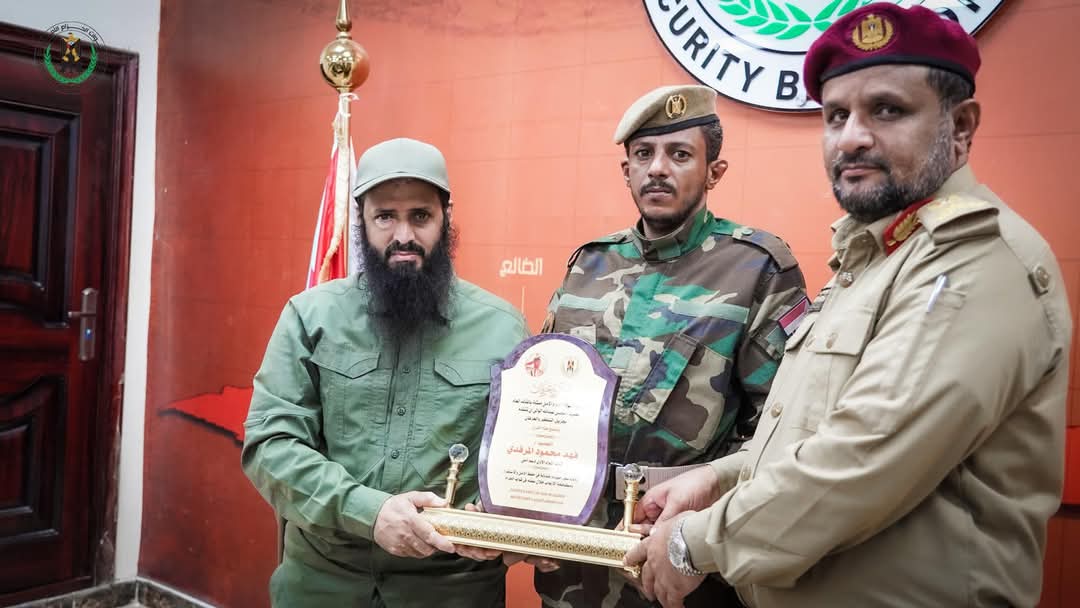 كرّم العميد محسن الوالي، القائد العام لقوات الحزام الأمني، اليوم العميد فهد المرفدي، وذلك تقديرًا لجهوده البارزة في مكافحة الإرهاب وتعزيز الأمن والاستقرار، خلال فترة توليه قيادة الحزام الأمني في يافع وقيادة كتيبة طوارئ الحزام الأمني في مديرية المحفد بمحافظة أبين، حيث نجح في ملاحقة فلول التنظيمات الإرهابية.