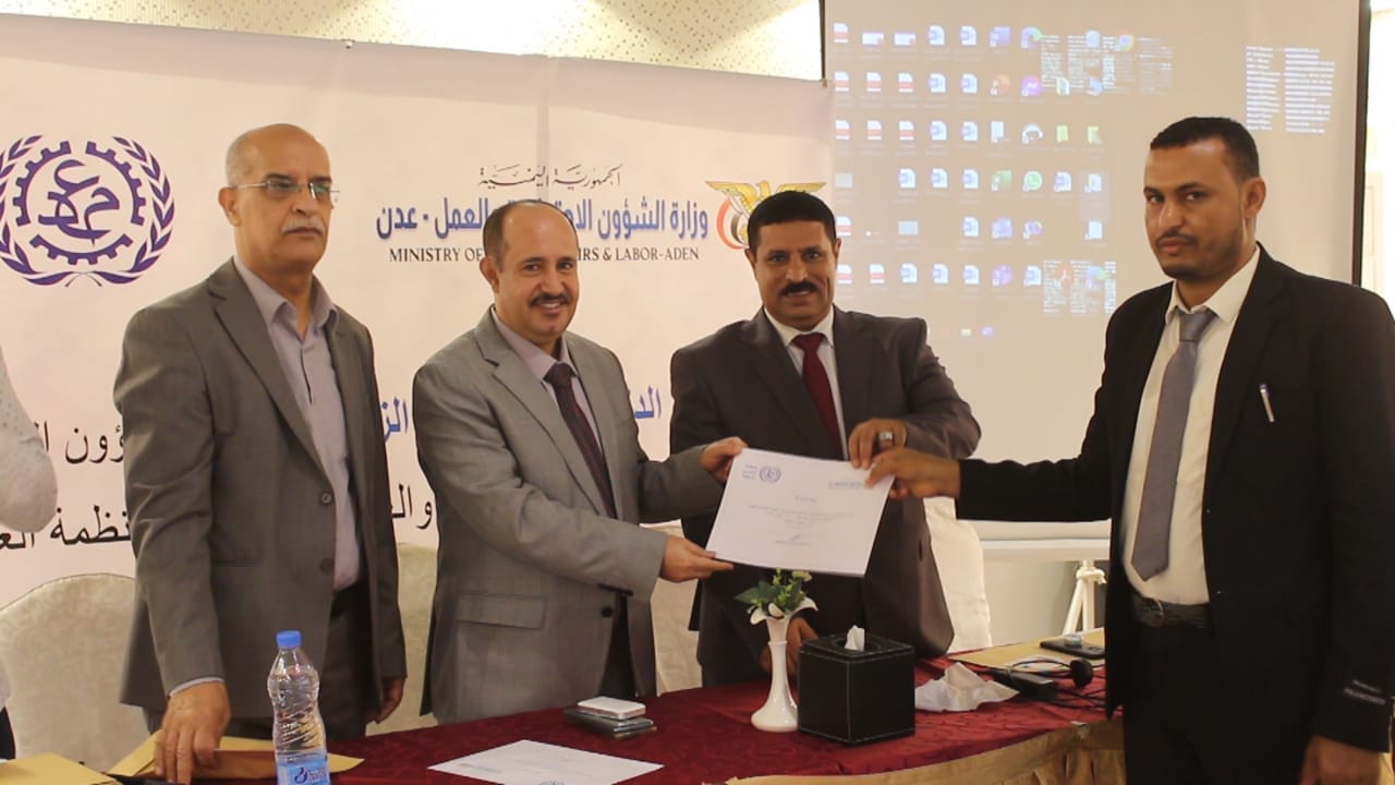 اختتمت اليوم في العاصمة المؤقتة عدن، فعاليات الورشة التدريبية الخاصة بالصحة والسلامة المهنية التي نظمتها وزارة الشؤون الإجتماعية والعمل، بالتعاون مع منظمة العمل الدولية.