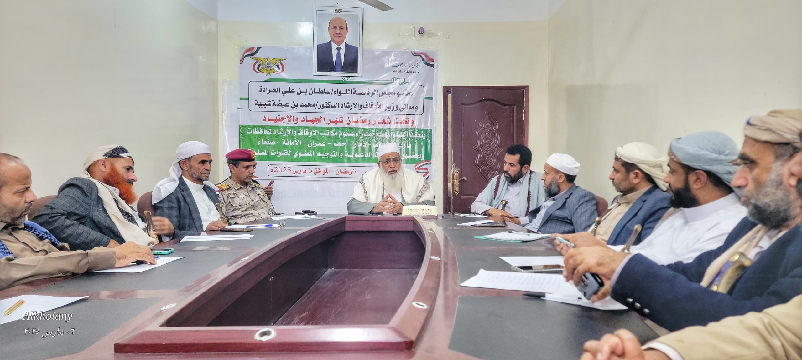 وخلال اللقاء، شدد وكيل وزارة الأوقاف على اهمية مضاعفة الجهود في المرحلة الراهنة لتعزيز الوعي وتحصين المواطنين من الافكار الهدامة، وتصحيح الكثير من المفاهيم والسلوكيات الخاطئة..مشيراً الى ضرورة استغلال الشهر الكريم في تفعيل رسالة المسجد واستغلال كافة الفعاليات والمنصات المجتمعية والتوعية من لقاءات ومسامر وتجمعات ووسائل تواصل اجتماعي ووسائل اعلام لايصال الرسالة الدعوية والارشادية للمجتمع التي تعزز معنوياتهم وتماسكهم وتلاحمهم، وتعمل على توحيد الكلمة والصفوف للمعركة الوطنية وتحصين عقول المجتمع.