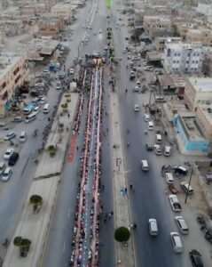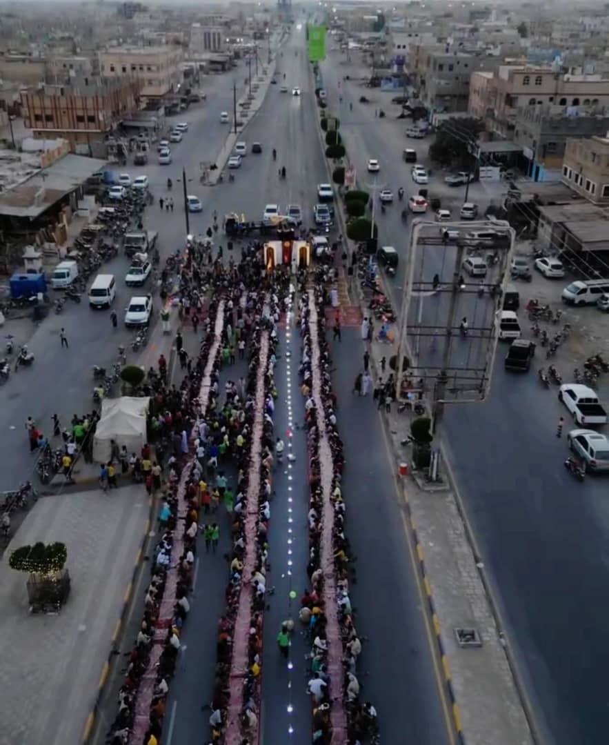 واقيمت مائدة اطول سفرة افطار على للصائمين، على الخط العام الرئيسي للمدينة وبدعوة عامة، بتمويلٍ من فاعلي الخير من داخل اليمن وخارجها، في لفتة إنسانية تترجم معاني البر والإحسان التي تتجلى في شهر رمضان المبارك، وقد حرص المنظّمون على توجيه هذه الصدقة لأرواح الشهداء والمرحومين؛ تعبيراً عن الامتنان والتقدير لتضحياتهم، وتعزيز لمبدأ التآخي والترابط الاجتماعي.