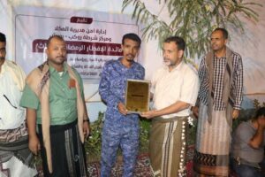 وتأتي هذه المبادرة ضمن سلسلة البرامج المجتمعية والإنسانية لإدارة أمن مديرية المكلا في شهر رمضان المبارك وفي إطار نهجها السنوي الهادف إلى تعزيز الروابط بين المجتمع والأمن ، وكرمت قيادة مركز شرطة وأمن روكب بويش المتميزين من منتسبي المركز و تم تكريم عامل الخدمات والتشجير بدرع الوفاء بالمركز .
