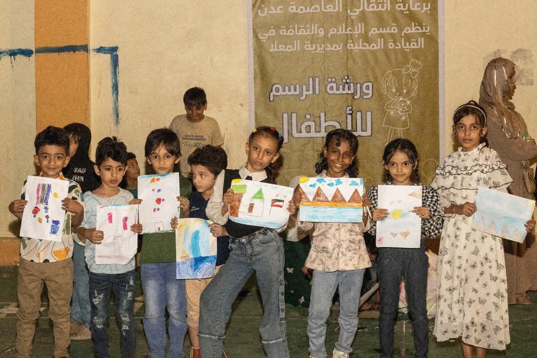 نظم قسم الإعلام والثقافة بالهيئة التنفيذية للقيادة المحلية للمجلس الانتقالي الجنوبي في مديرية المعلا، ورشة فنية للرسم استهدفت الأطفال من الفئة العمرية 8 إلى 14 سنة، وذلك في نادي شمسان الرياضي والثقافي، بحضور نائب مدير إدارة الإعلام والثقافة بالهيئة التنفيذية لانتقالي العاصمة عدن، ياسر عبدالباقي.