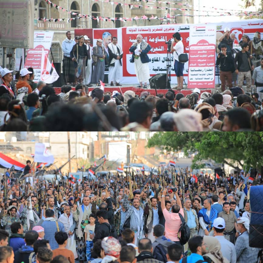 جاء ذلك خلال فعالية جماهيرية حاشدة أقيمت في ساحة الحرية، أعقبها إفطار جماعي، نظمتها مجالس المقاومة في المديريات الثلاث لأبطال الجبهة الشمالية، برعاية وإشراف المجلس الأعلى للمقاومة الشعبية.