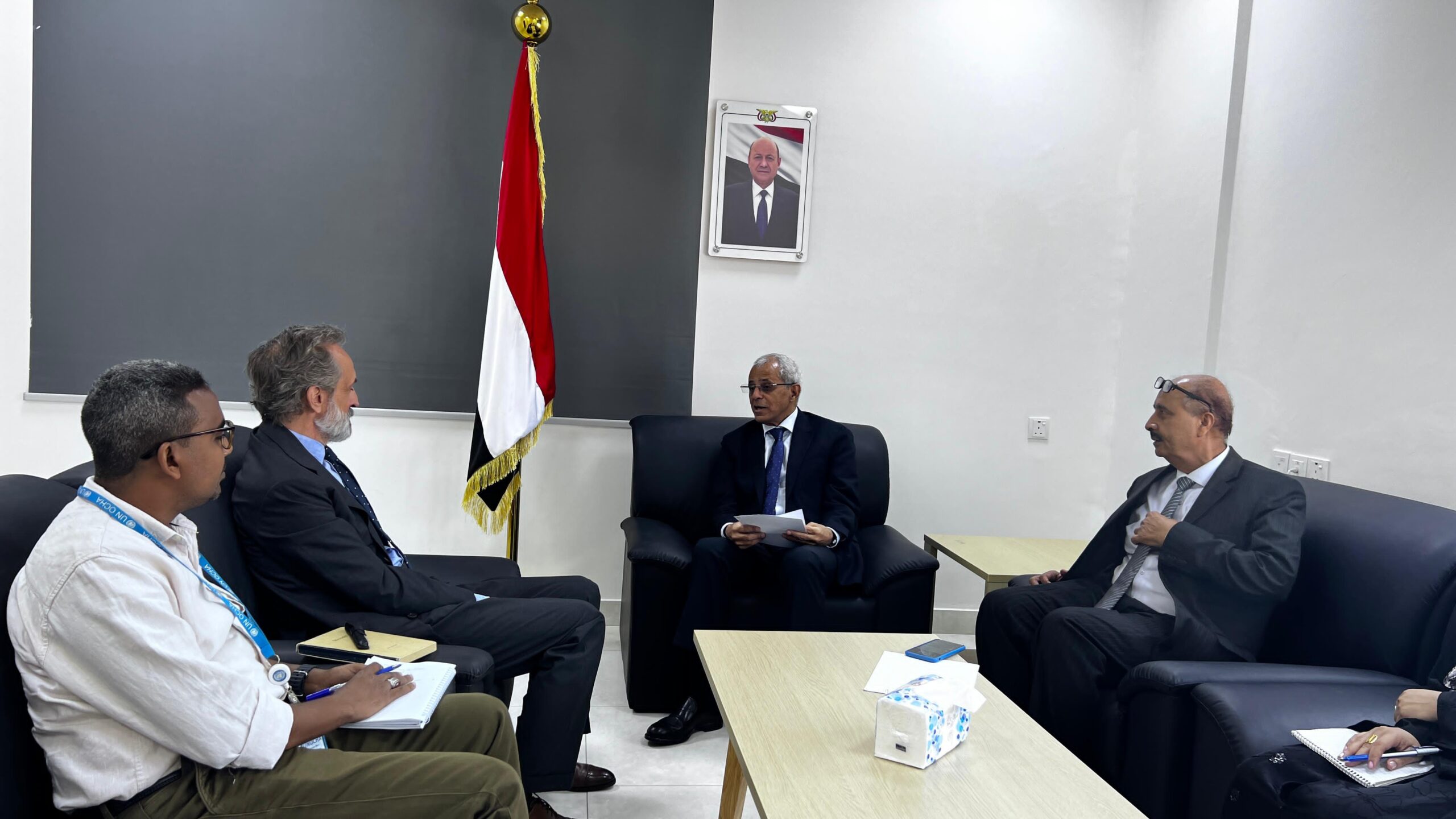 جرى خلال اللقاء، بحث تطورات الوضع في اليمن، وسبل تعزيز التعاون بين الحكومة اليمنية والمنظمات الدولية بهدف تخفيف معاناة الشعب اليمني.