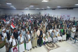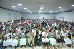 كما ألقى الشيخ واصل عبادي كلمة العلماء أكد فيها أن اليمن لن يكون تابعاً لإيران ونظام ولاية الفقيه وسيظل كما عرف عنه في التاريخ جيش المدد والفتوحات ومقبرة للغزاة الطامعين .. داعياً أبناء الشعب اليمني إلى تعزيز وحدة الصف ولملمة وتأليف القلوب والابتعاد عن كل ما يعكر اللُحمة اليمنية ونبذ العنصرية والمناطقية المقيتة.