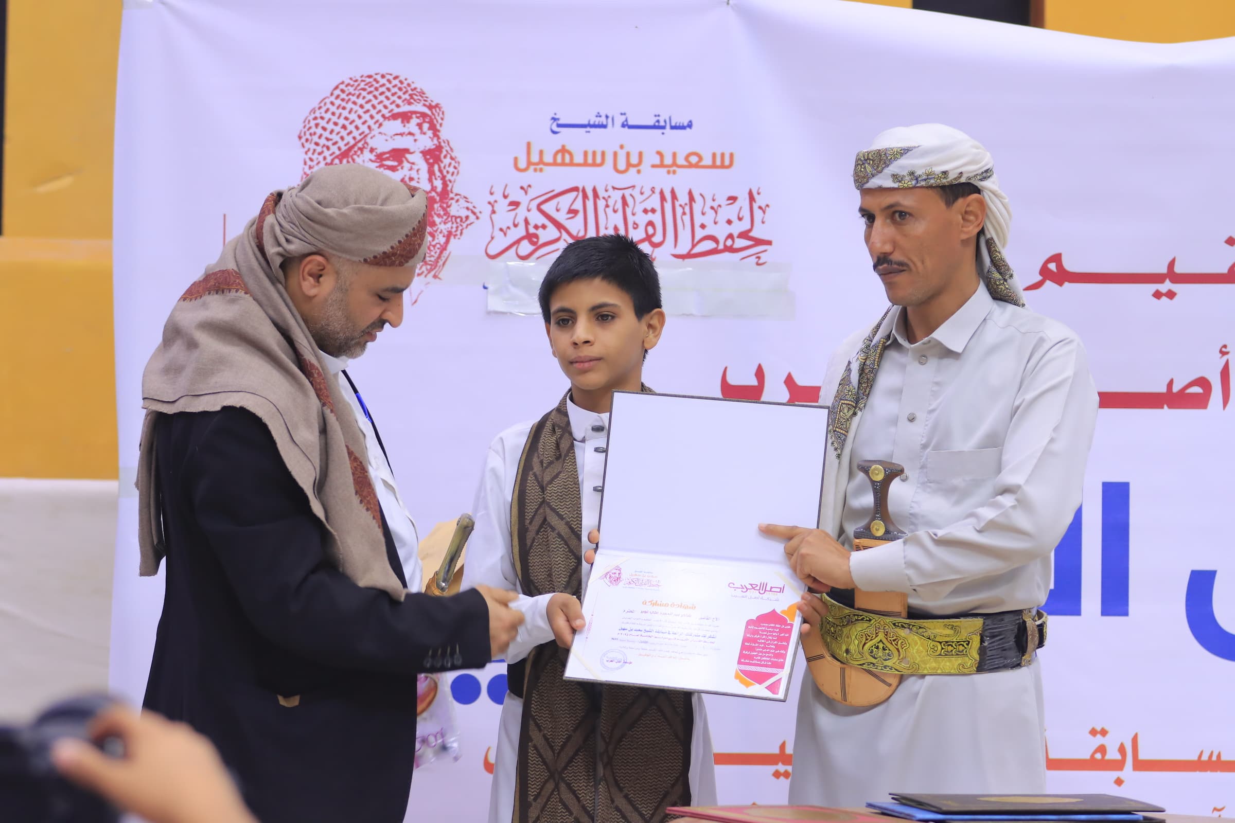 كرمت مؤسسة أصل العرب الخيرية بمحافظة مأرب الفائزين بجائزة الشيخ سعيد بن عبدالرحمن سهيل للقرآن الكريم بدورتها الخامسة.