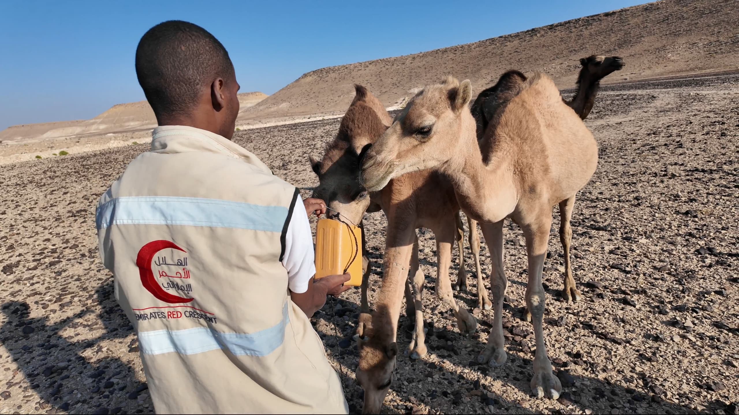 خلال إحدى المهمات الإنسانية لفريق الهلال الأحمر الإماراتي في منطقة نائية وبعيدة عن مصادر المياه، واجه الفريق مشهدًا مؤثرًا يكشف عن مدى تفانيهم ورحمتهم ليس فقط تجاه البشر، بل أيضًا تجاه الحيوانات.