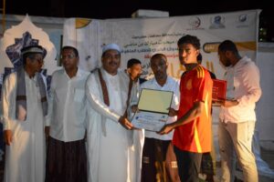 واختتم كلمته بالاشادة والتقدير لدور السلطه المحلية ودعمها والتي سهلت الكثير من الصعاب ودور الجامعات والهيئات العلمية لجامعة حضرموت وعدن وسيئون والاحقاف والعرب والريان والمجلس اليمني للاختصاصات الطبية والتي تعاونت في احتواء الطلاب وإدارة برامج الدعم والتدريب لهم و على الدور الابرز في المؤسسات والمنظمات والايادي البيضاء الممولة لانشطة المؤسسات إو المساهمة في التدريب المؤسسي وذكر منها مؤسسة صلة للتنمية والتي مولت بعض البرامج المتميزة ومؤسسة العون للتنمية والتي ساهمت في التدريب المؤسسي و لاننسى وقود العمل المنفذين على أرض الواقع فرق العمل والمتطوعين والمساهمين والمتعاونين مع برامجنا ومشاريعنا. وشاكرا لجميع من شرف هذه الأمسية بالحضور