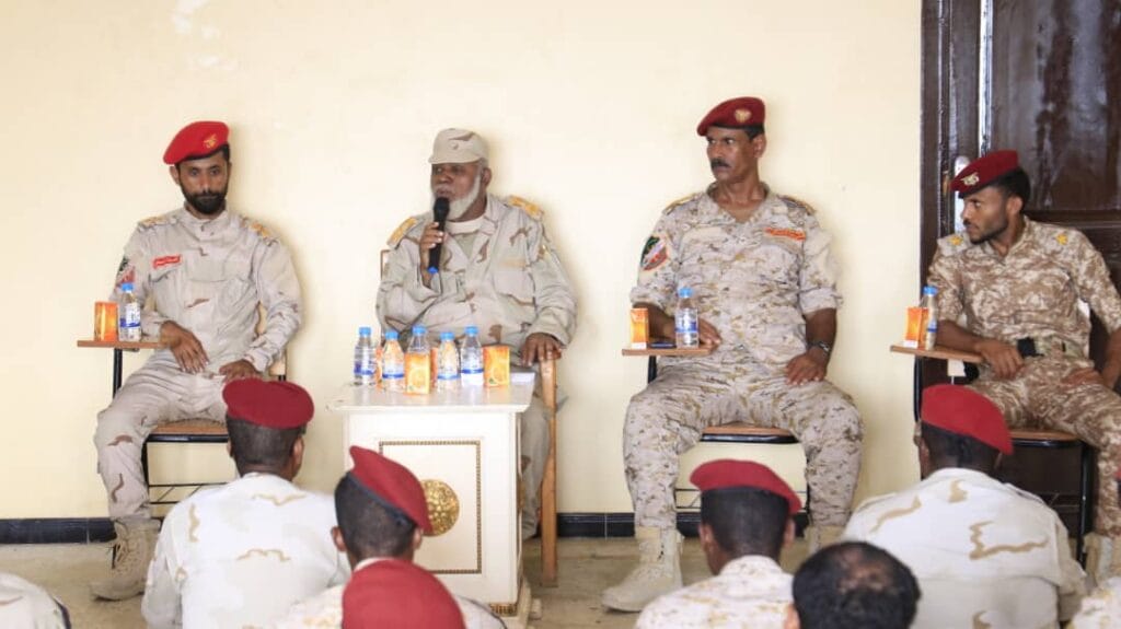 العين الفاحصة والحس الأمني الدقيق ،والتمتع بالحاسه السادسه للجندي هي المضمون الأساس في العمل المكتسب التي يجب أن يكون عليها الفردومتوجهاً بحديثه إلى قلوب وعقول الأفراد قائلاً: حضرموت اليوم غير الامس فهي تمتلك قيادات أجمعت على حبها لحضرموت ،منطلقة من اليوم التاريخي لحضرموت الرابع والعشرون من إبريل العظيم فهو إرث لتاريخ حضرموت الممتد من تاريخ الأحقاف وعليكم الاعتزاز بالهوية التاريخية لحضرموت.