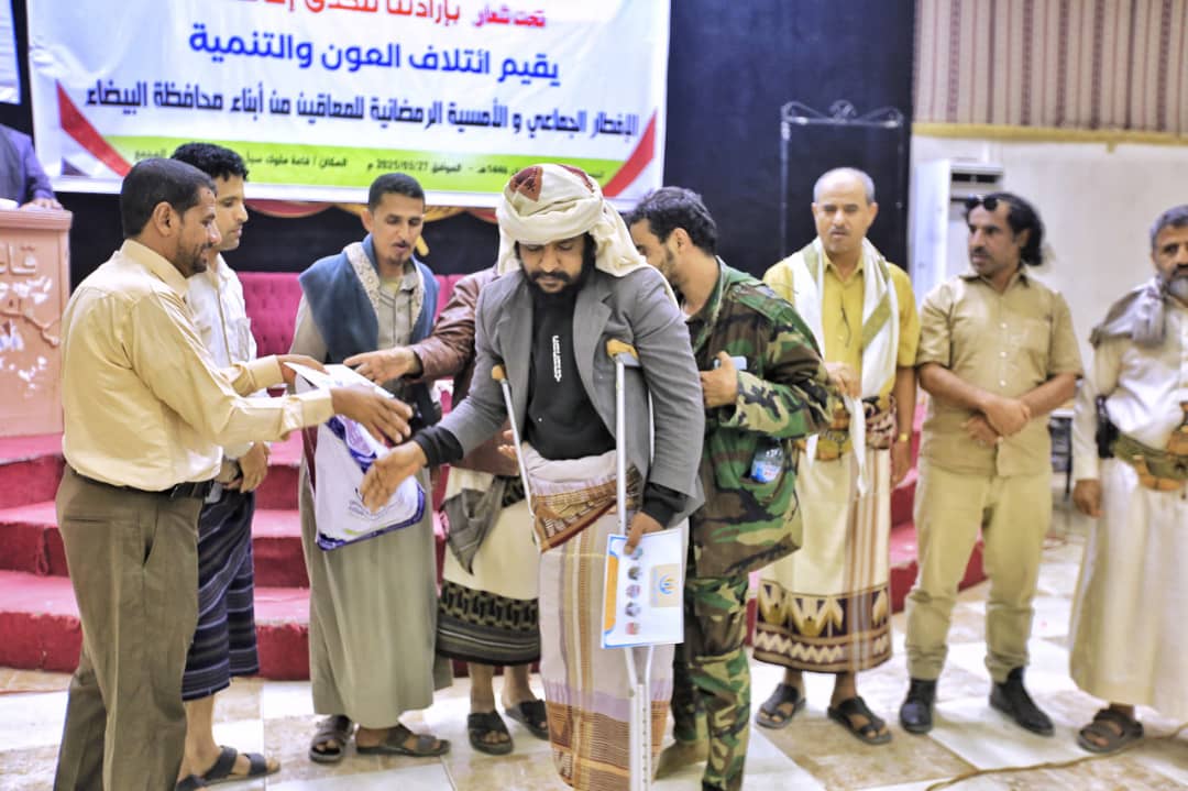 نظم ائتلاف العون والتنمية بمحافظة البيضاء، مؤدبة افطار وأمسية رمضانية لتكريم المعاقين من أبناء المحافظة، تحت شعار ( بإرادتنا