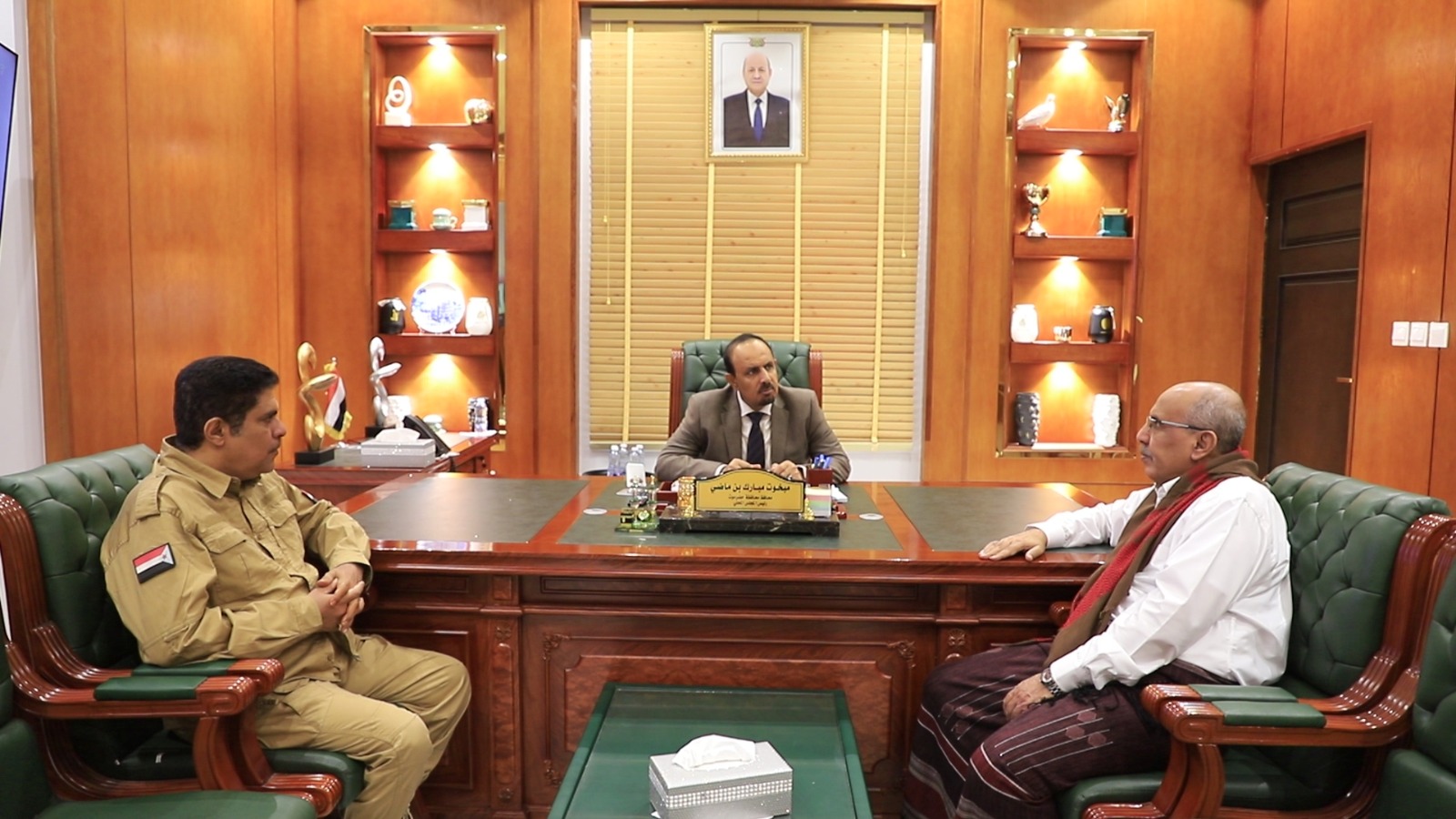 التقى محافظ حضرموت الأستاذ مبخوت مبارك بن ماضي، اليوم بالمكلا، برئيس الجمعية الوطنية للمجلس الانتقالي الجنوبي الأستاذ علي الكثيري، ورئيس القيادة المحلية للمجلس الانتقالي الجنوبي في حضرموت العميد سعيد المحمدي، وذلك لبحث سبل تعزيز الأمن والاستقرار في المحافظة.