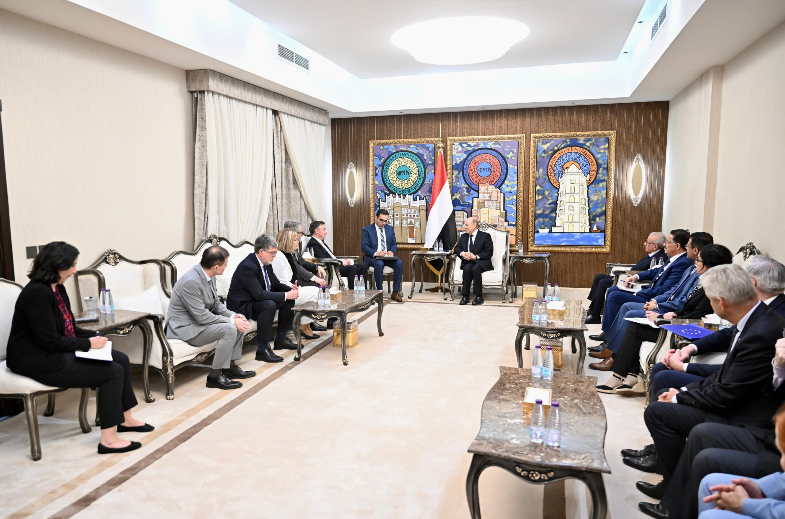 حضر اللقاء مدير مكتب رئاسة الجمهورية الدكتور يحيى الشعيبي، وسفير بعثة الاتحاد الاوروبي لدى اليمن، غابرييل مونيرا فيناليس، وعدد من المسؤولين في الجانبين.