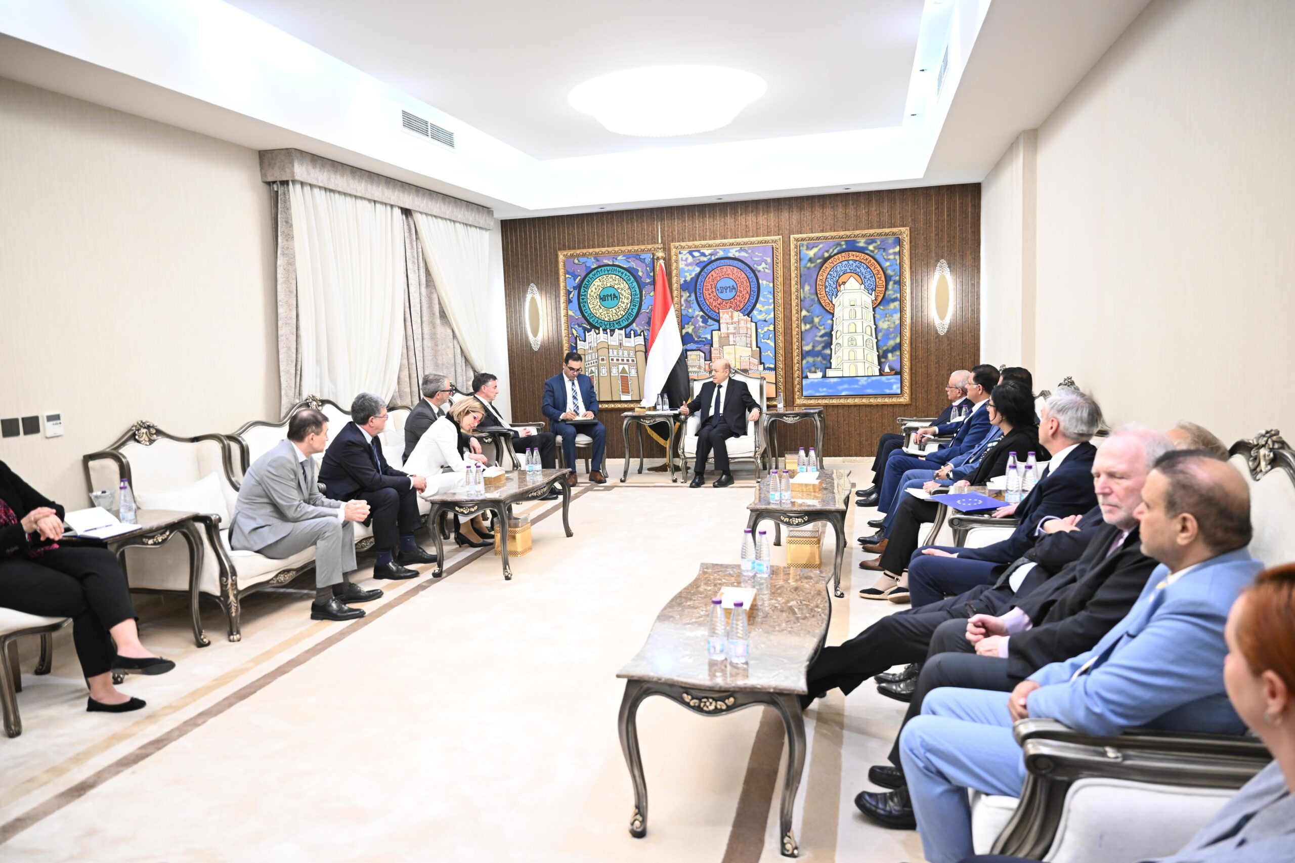 واكد رئيس مجلس القيادة الرئاسي حرص المجلس والحكومة على تطوير الشراكة الاستراتيجية مع المجتمع الدولي على كافة المحاور من اجل خلق معادلة ردع مشتركة ضد السلوك الإرهابي الحوثي، واجباره على التسليم بإرادة الشعب اليمني، و الشرعية الدولية، سلما، او حربا.
