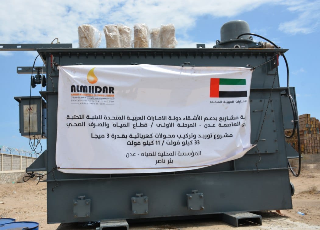 تسلمت المؤسسة المحلية للمياه والصرف الصحي بعدن، اليوم، محولات كهربائية ضمن منحة اماراتية لدعم مشاريع البنية التحتية للمحافظة.