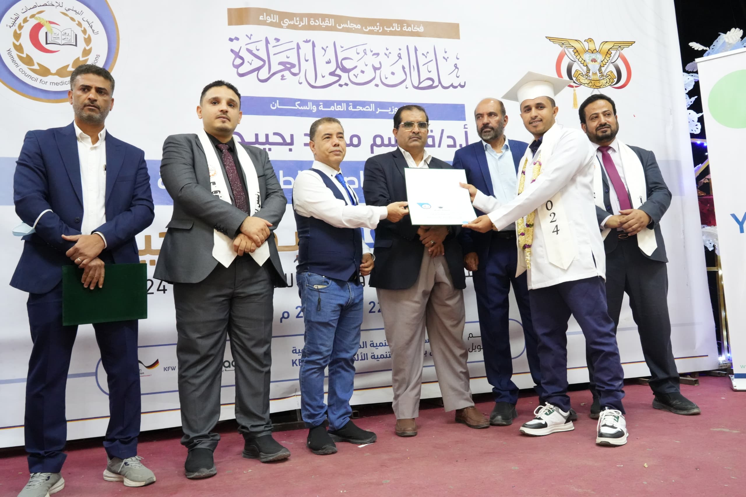 احتفى المجلس اليمني للاختصاصات الطبية والصحية بمحافظة مأرب، اليوم، بتخريج اول دفعة تخصصية في دبلوم الطوارئ التوليدية والوليدية من المعهد العالي للعلوم الصحية، والتي تضم 24 خريجاً وخريجة من الاطباء والعاملين الصحيين في المستشفيات الحكومية، جرى تأهيليهم بالتعاون مع مؤسسة يمان للتنمية الصحية وبتمويل من بنك التنمية الألماني (KFW).