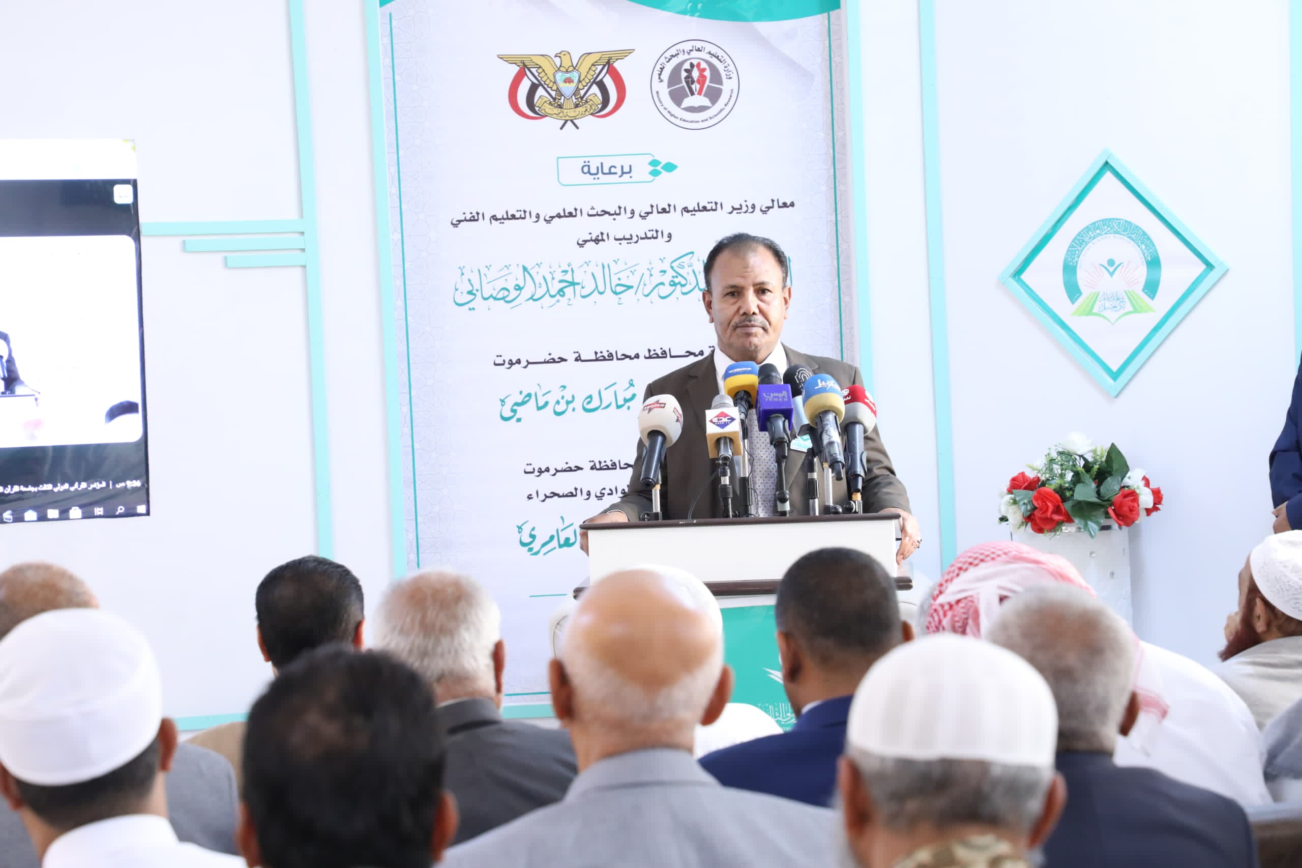 وفي افتتاح المؤتمر، أشاد وكيل المحافظة بالدور الريادي الذي تقوم به جامعة القرآن الكريم في خدمة العلوم الإسلامية، وتعزيز الهوية الدينية والفكرية للأمة .. مؤكداً دعم قيادة السلطة المحلية لمثل هذه المؤتمرات بما يعزز مكانة حضرموت العلمية ، وباعتبارها منصة لتبادل المعرفة بين الباحثين من شتى أنحاء العالم، وخطوة عملية لتحقيق نهضة فكرية مهمة لمعالجة التحديات التي تواجه المجتمعات الإسلامية في ضوء القرآن الكريم.