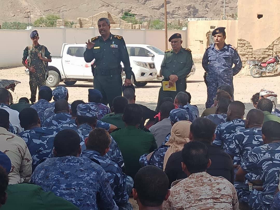 وخلال جولته التفقدية تقدم العميد / الجابري عن شكره وتقديره للجهود المبذولة من قبل إدارة وقيادة أمن مديرية حجر ممثلة بمديريها المقدم / فريد محمد الشاذلي في الإلتزام الملحوظ للضباط والأفراد بواجبهم على أكمل وجه في ظل شحة الإمكانيات المادية والآليات والمعدات مشيدا بدورهم وصبرهم مؤكدا بإن القيادة عازمة على حل كافة المشاكل التي يعاني منها ضباط وأفراد منتسبيها .