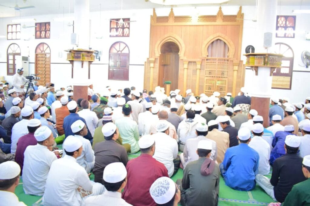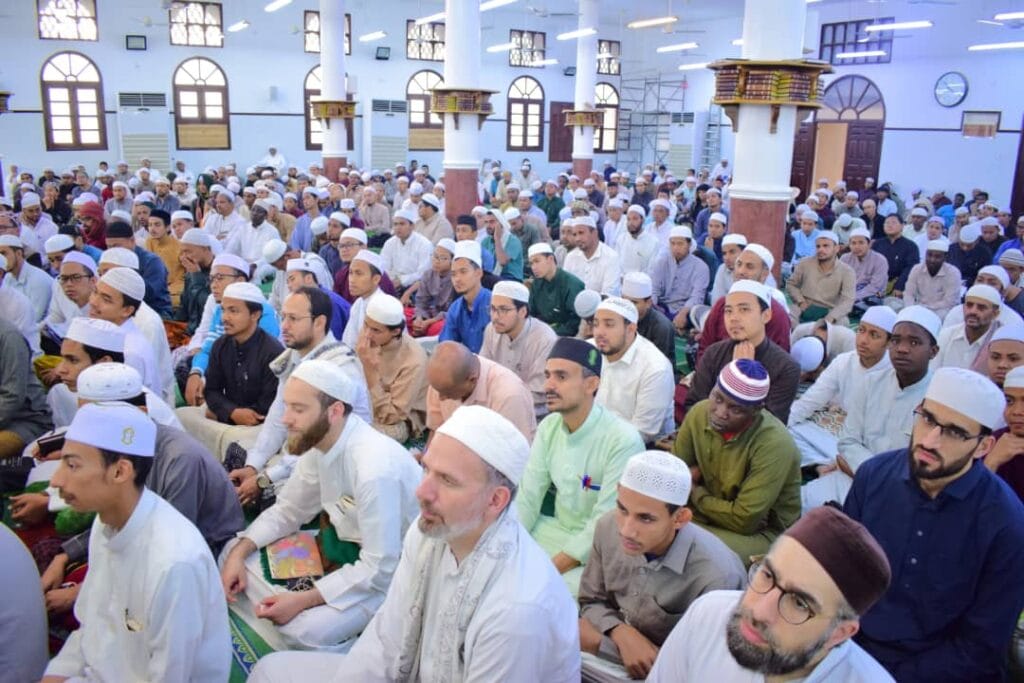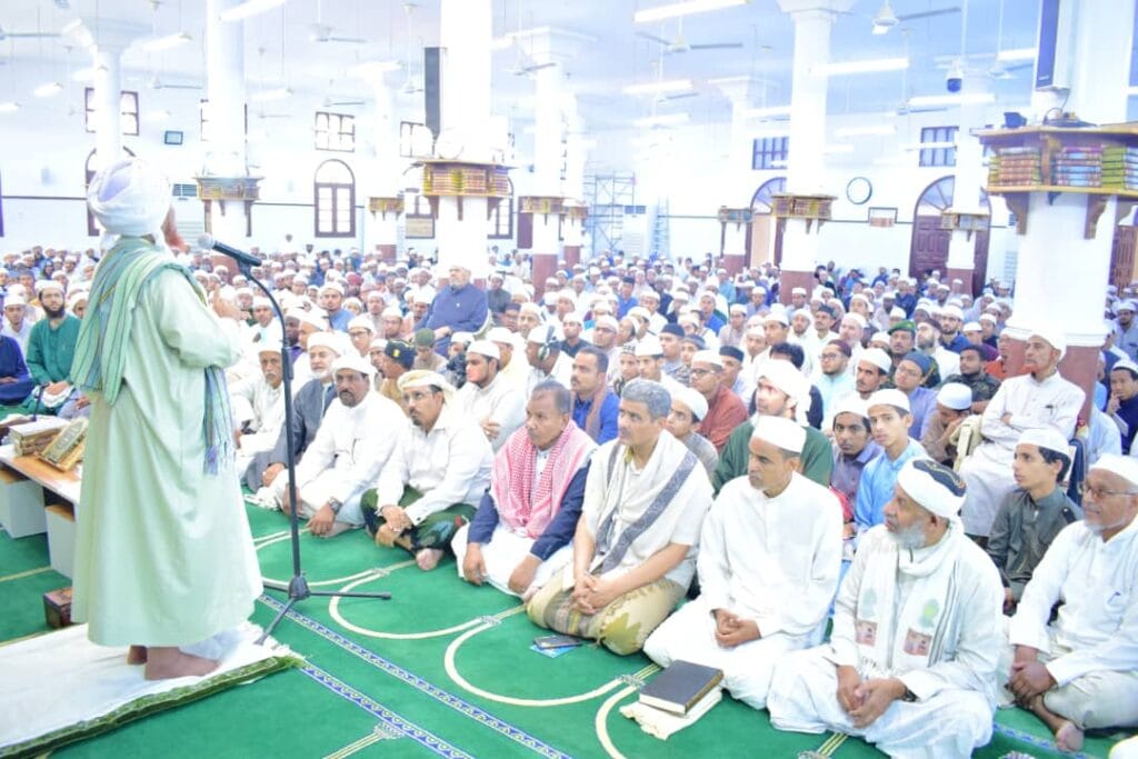 ودعا العلامة الحبيب عمر بن حفيظ عميد دار المصطفى إلى التعاون والبر والتقوى في هذه الأيام المباركة من شهر رمضان المعظم، وحث على التآلف بين القلوب والابتعاد عن شرور الأنفس والسعي للربح في شهر الربح والخير، مبتهلاً إلى المولى تعالى بالشكر والحمد على ما بقي في الأمة من خير وفي حكامها من أثر خير وايمان، داعيًا المولى بأن يُعين المحافظ واخوانه في السلطة المحلية على أداء الأمانة وتسخير لهم أسباب النجاح والتوفيق.