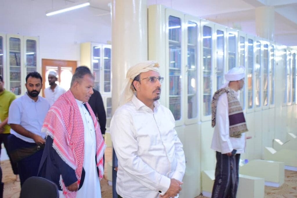 والتقى المحافظ ومعه وكيل المحافظة لشؤون الوادي والصحراء عامر سعيد العامري، ومدير عام مديرية تريم حسن مولى الدويلة، ومدير الاوقاف بتريم حسن بابطاط، خلال الزيارة عميد الدار العلامة الحبيب عمر بن محمد بن حفيظ، واطلع على محتويات المكتبة العامة بدار المصطفى التي تشمل كتبًا في علوم القرآن الكريم والحديث وعلومه والسيرة والشمائل وأصول الفقه والأذكار والأدعية والتاريخ والتراحم وعلوم اللغة والبحث الالكتروني الحديث والكتب المعاصرة التي يستزيد منها طلاب العلم من جميع أنحاء العالم الذين يتلقون العلم الشرعي بدار المصطفى.