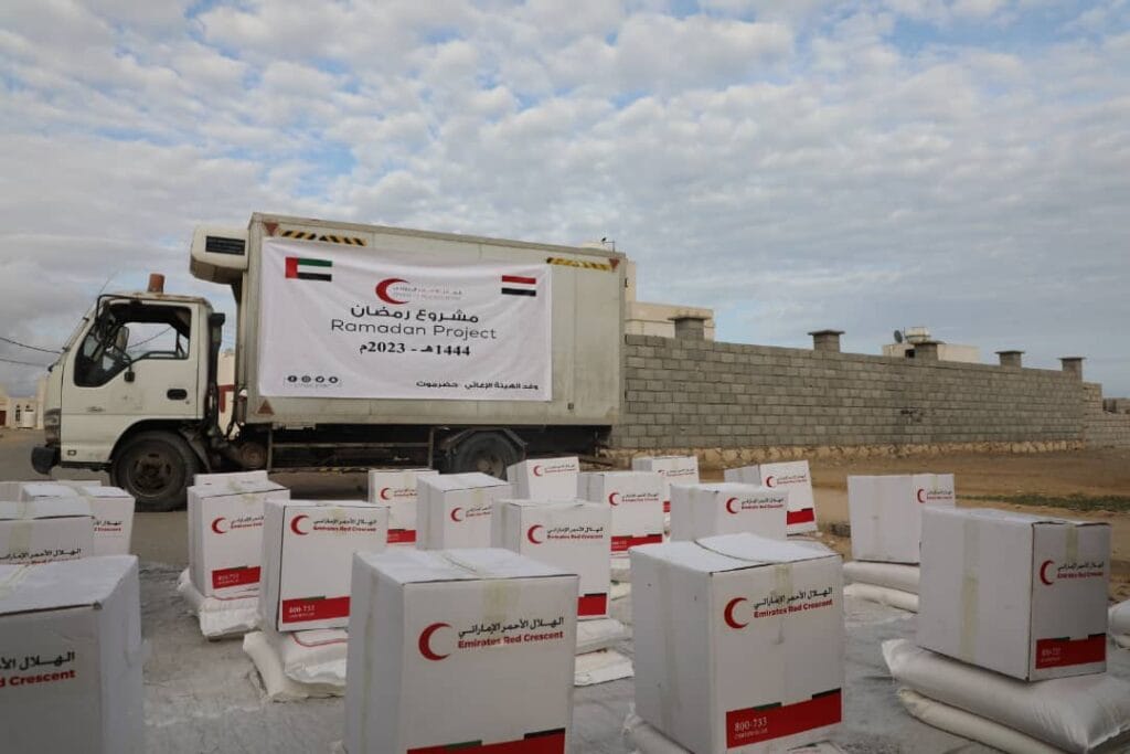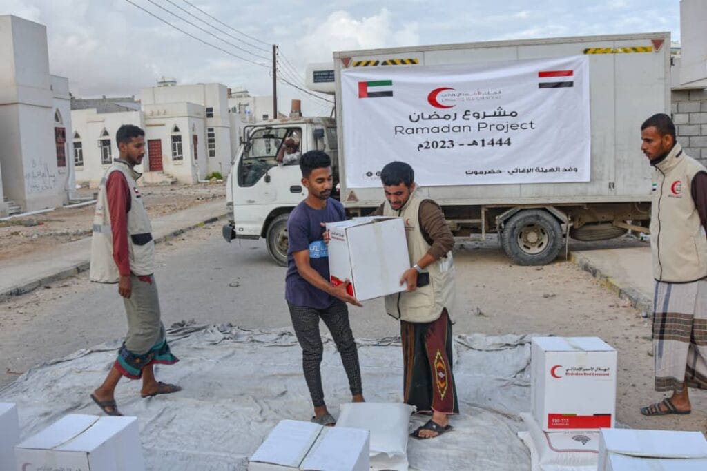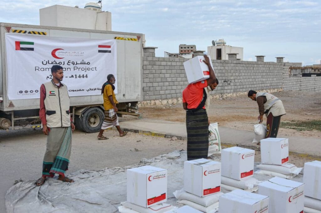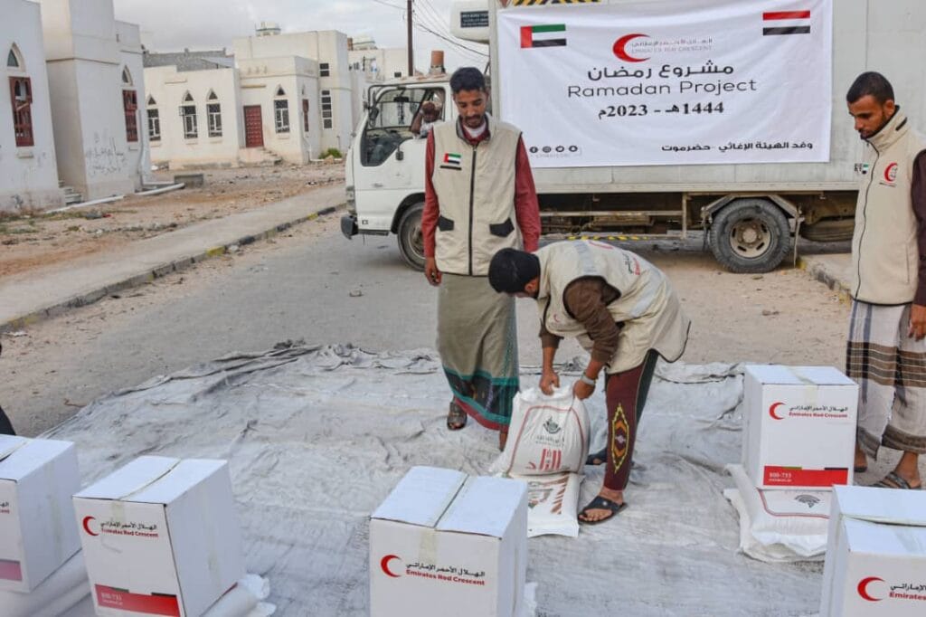 دشنت هيئة الهلال الأحمر الإماراتي توزيع المير الرمضاني على الأسر المحتاجة بمديرية المكلا بمحافظة حضرموت، تزامنا مع قدوم شهر رمضان المبارك بهدف التخفيف من معاناة أهالي المديرية وتحسين ظروفهم المعيشية وذلك في إطار جهودها الإنسانية والإغاثية التي تبذلها على مختلف الأصعدة لمساعدة الأشقاء في اليمن والتخفيف من معاناتهم وتحسين ظروفهم المعيشية.