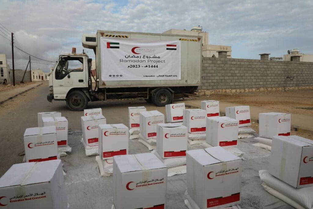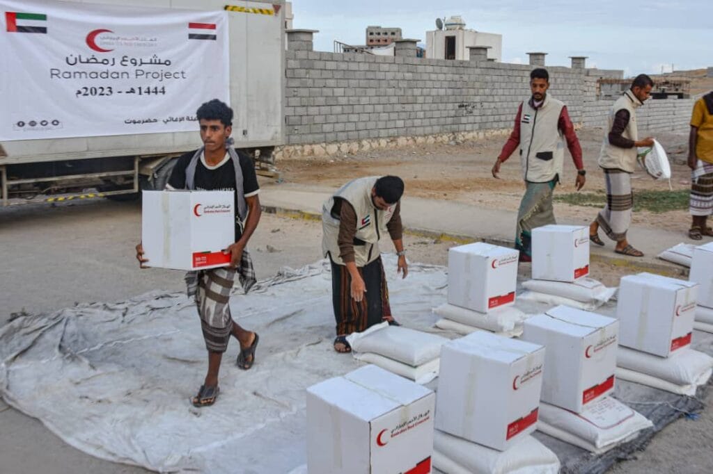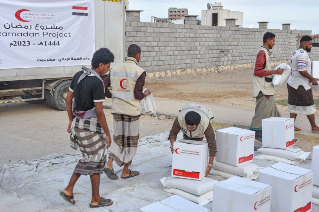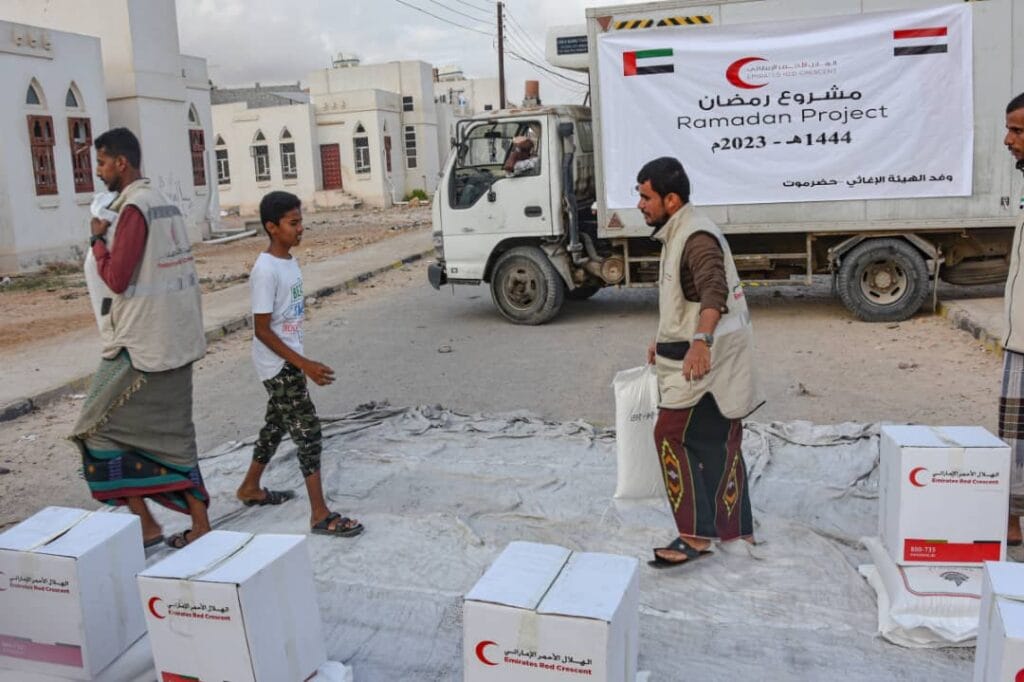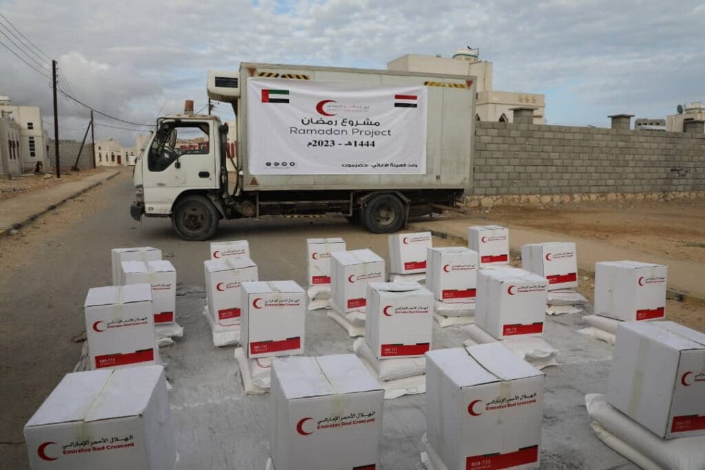 دشنت هيئة الهلال الأحمر الإماراتي توزيع المير الرمضاني على الأسر المحتاجة بمديرية المكلا بمحافظة حضرموت، تزامنا مع قدوم شهر رمضان المبارك بهدف التخفيف من معاناة أهالي المديرية وتحسين ظروفهم المعيشية وذلك في إطار جهودها الإنسانية والإغاثية التي تبذلها على مختلف الأصعدة لمساعدة الأشقاء في اليمن والتخفيف من معاناتهم وتحسين ظروفهم المعيشية.