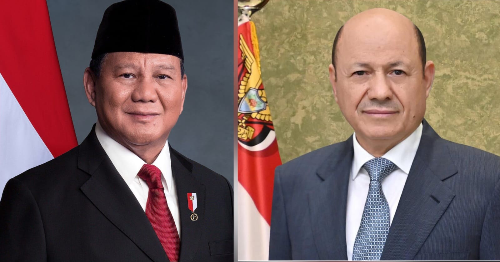 تلقى فخامة الرئيس الدكتور رشاد محمد العليمي، رئيس مجلس القيادة الرئاسي، برقية تهنئة من فخامة الرئيس برابوو سوبيانتو، رئيس جمهورية اندونيسيا بمناسبة العيد الوطني الـ 35 للجمهورية اليمنية 22 مايو.