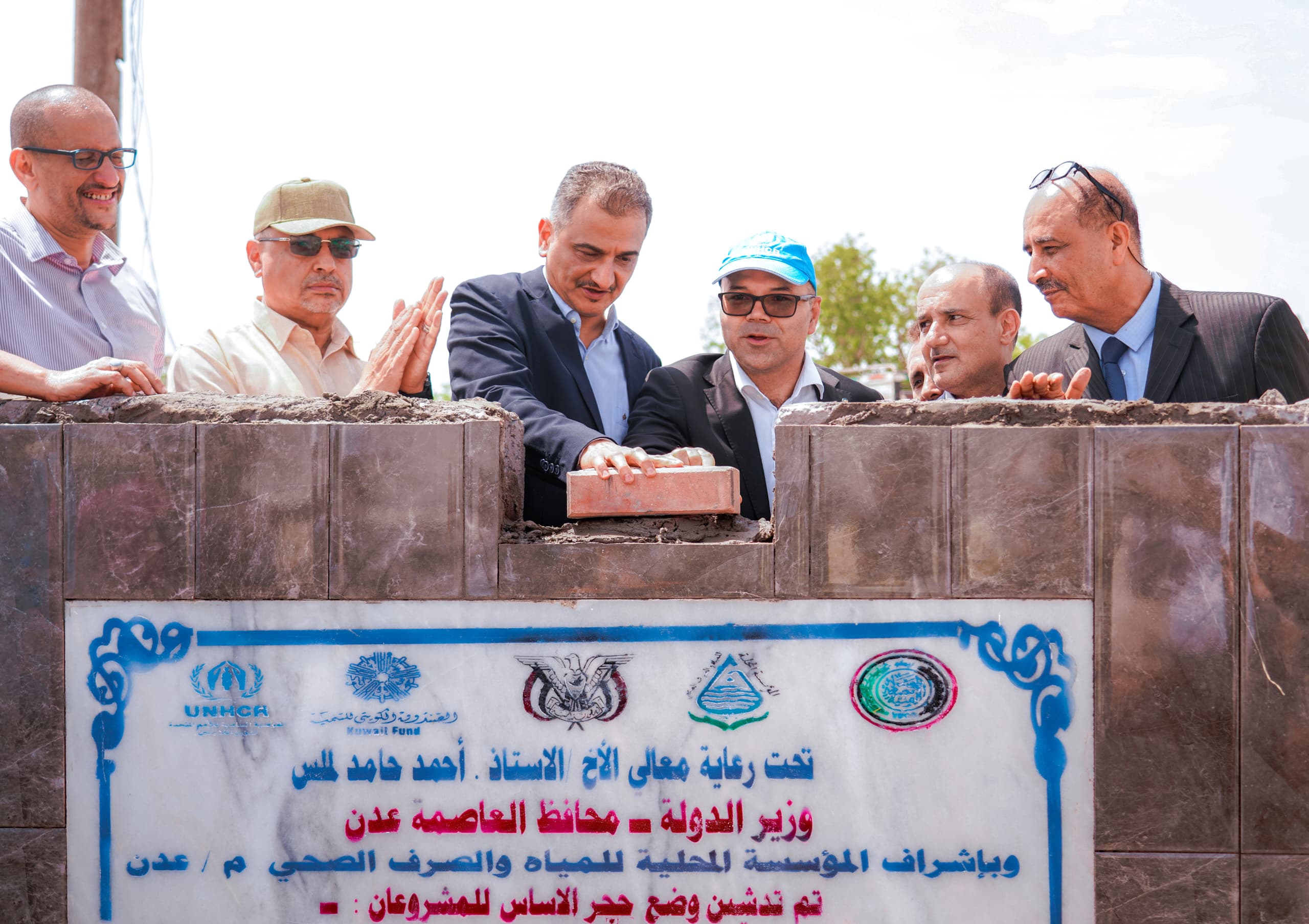 وضع وزير الدولة، محافظ عدن، أحمد حامد لملس، اليوم، حجر الأساس لمشروع محطة ضخ الصرف الصحي في منطقة العريش، وعدد من المسؤولين المحليين وممثلي الجهات الداعمة.