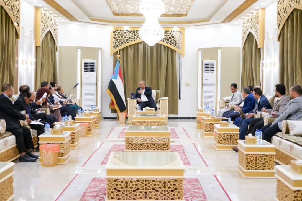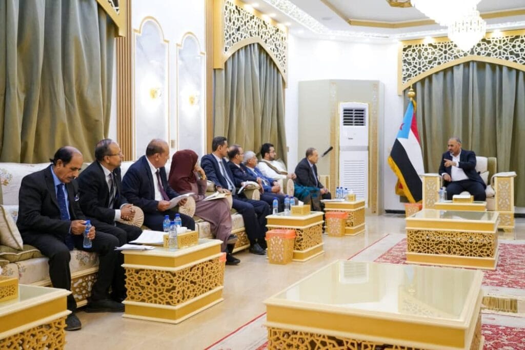 عقد الرئيس القائد عيدروس قاسم الزُبيدي رئيس المجلس الانتقالي الجنوبي، مساء اليوم الجمعة، لقاءً مشتركًا، بفريق الحوار الوطني الجنوبي الداخلي، ورؤساء عدد من المكونات السياسية الجنوبية، تقدمهم المحامي علي هيثم الغريب رئيس مجلس الحراك الجنوبي السلمي، وزير العدل السابق، وعبدالرؤوف زين السقاف رئيس المجلس الأعلى للحراك الثوري، وفادي حسن باعوم رئيس المكتب السياسي للمجلس الأعلى للحراك الثوري.