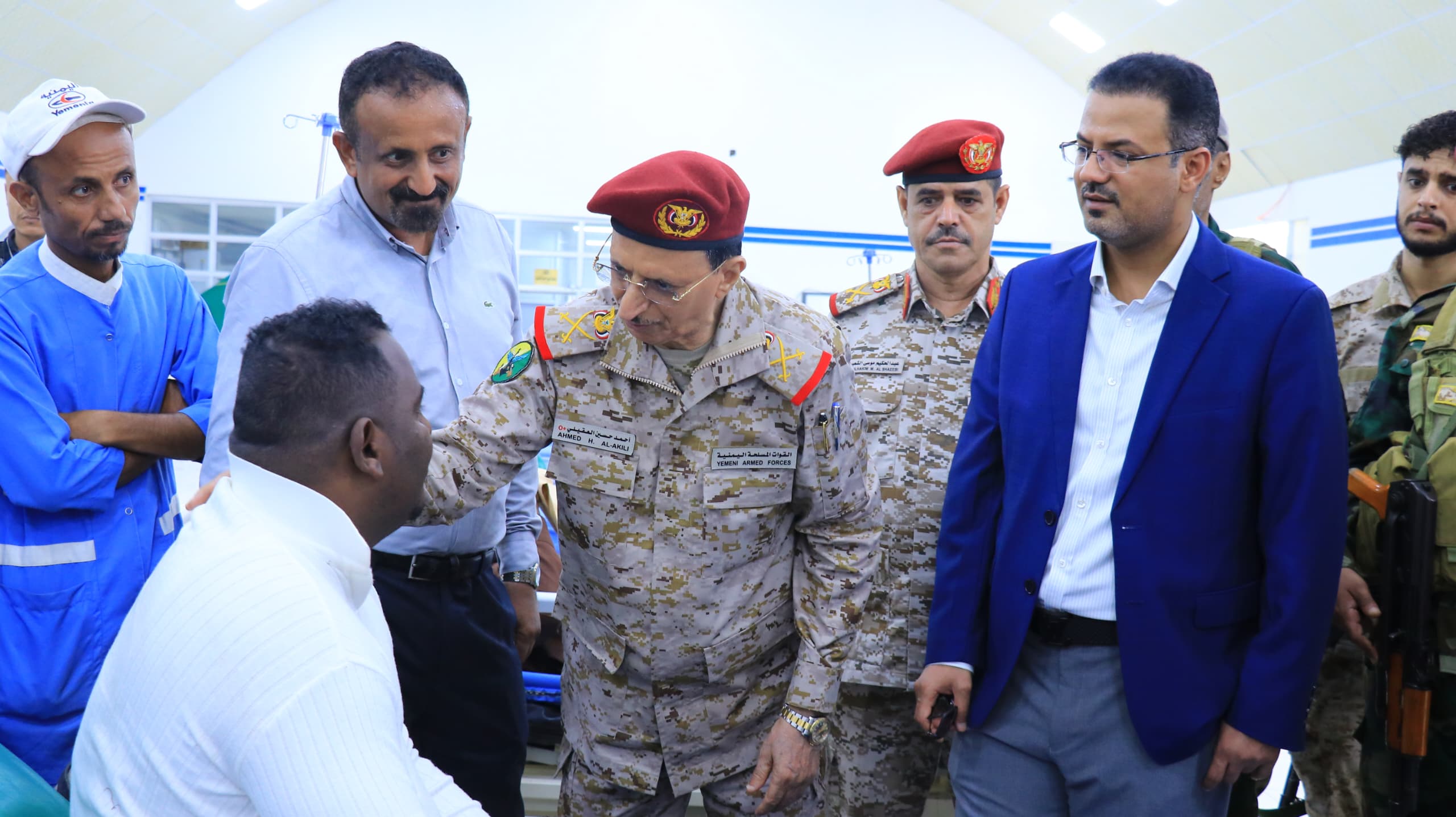 وقال العقيلي والصالح ” بتكليف من فخامة الرئيس الدكتور رشاد محمد العليمي، رئيس مجلس القيادة الرئاسي، قمنا اليوم بزيارة عيدية لتفقد أوضاع وأحوال جرحى القوات المسلحة، والتشكيلات العسكرية المدافعة عن حياض الوطن في مختلف جبهات القتال ضد المليشيات الحوثية”.