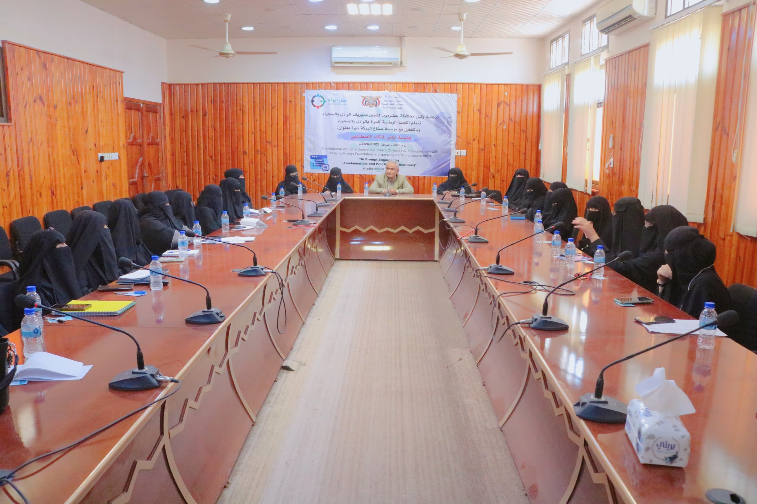 دشن مدير عام مديرية سيئون، الأستاذ خالد صالح بلفاس، اليوم، الدورة التدريبية المتخصصة في (هندسة أوامر الذكاء الاصطناعي) والتي تنظمها اللجنة الوطنية للمرأة بوادي وصحراء حضرموت بالتعاون مع مؤسسة صناع البركة للتنمية.
