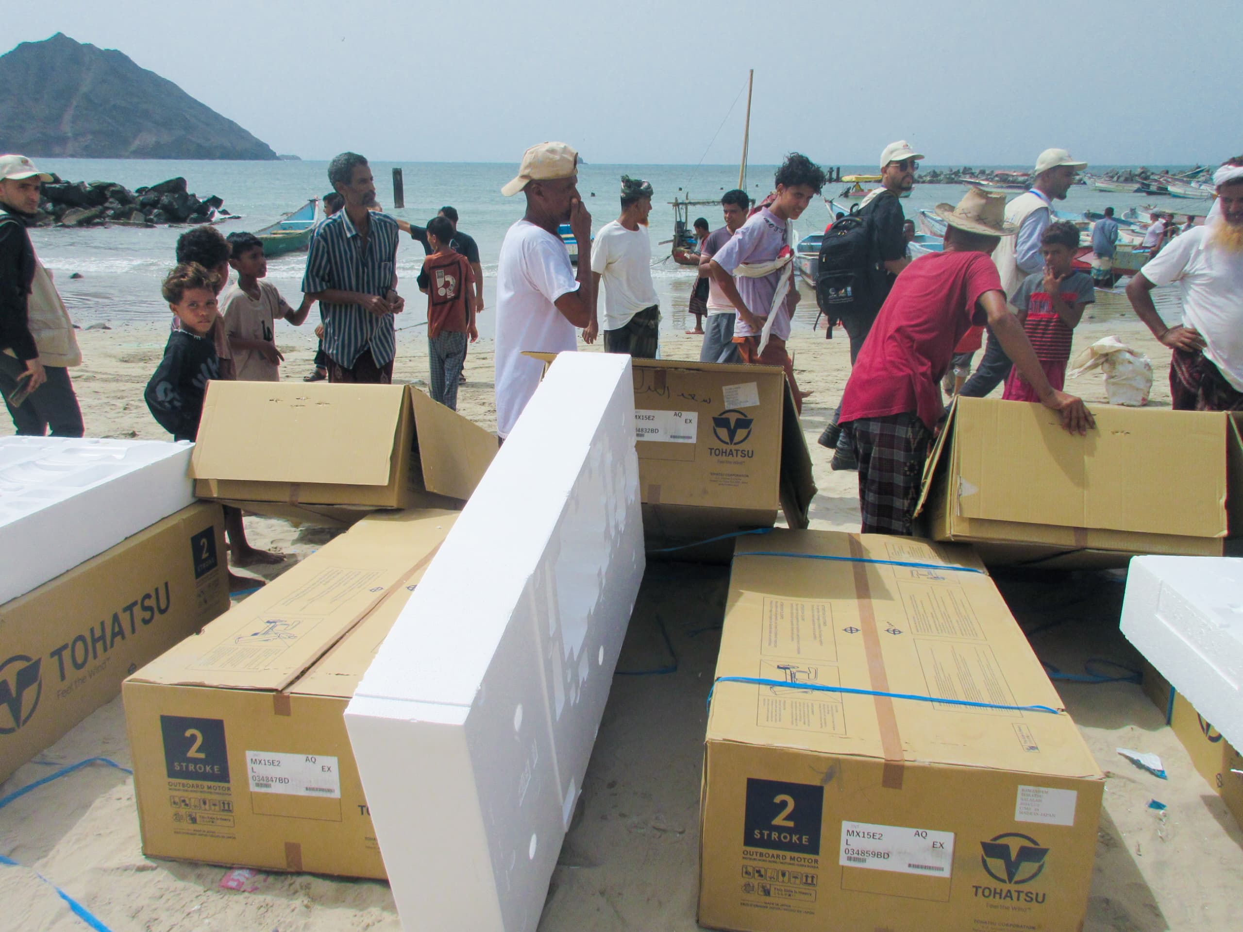 وأوضح رئيس هيئة مصائد خليج عدن، أن عملية التوزيع شملت توزيع 125 محركًا بحريًا و130 شباك صيد لعدد 255 مستفيدًا من الصيادين في مناطق الخيسة وكود النمر وكوبجن والكواد، والجسر و الحسوة، وذلك بهدف تحسين قدراتهم المعيشية وتعزيز الأمن الغذائي.