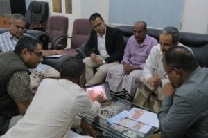 حضر اللقاء المهندس مازن إبراهيم المساوى مشرف المشروع وعبدالرحمن الحبشي مندوب ميداني لليونسكو بوادي حضرموت والمهندس حسن علوي مولى الدويلة المهندس المكلف من قبل هيئة الآثار بالوادي والأخ خالد بارماده مشرف الصيانة بقصر سيئون.