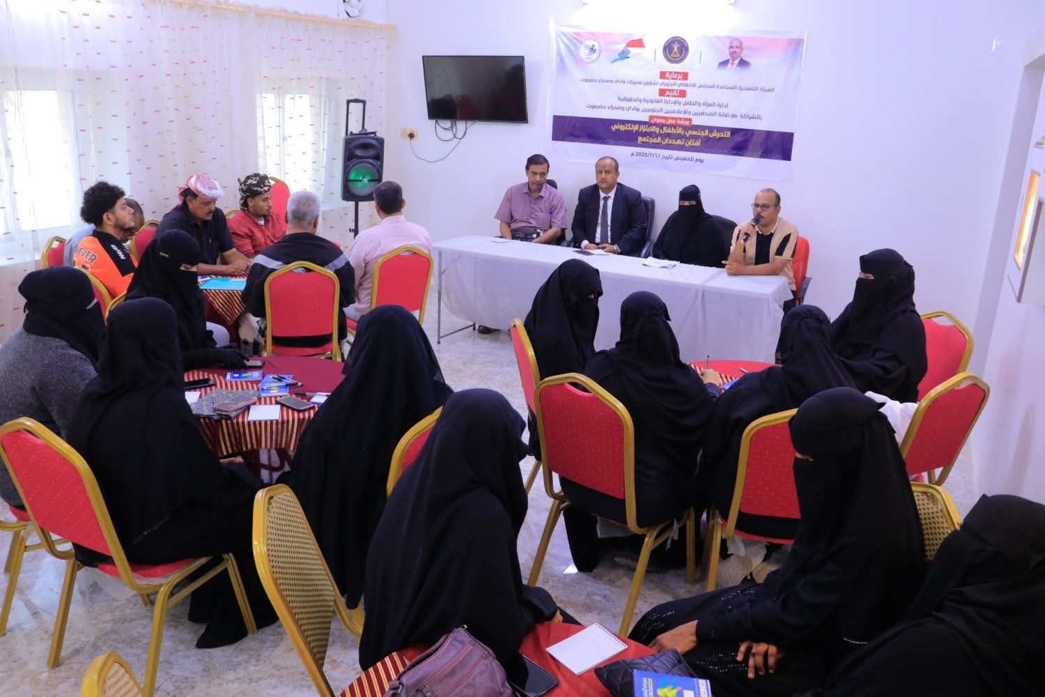 أقامت إدارة المرأة والطفل والإدارة القانونية والحقوقية بالهيئة التنفيذية المساعدة للمجلس الانتقالي الجنوبي لشؤون مديريات وادي وصحراء حضرموت، اليوم الخميس، ورشة عمل بعنوان “التحرش الجنسي بالأطفال والابتزاز الإلكتروني آفتان تهددان المجتمع”، وذلك بالشراكة مع نقابة الصحفيين والإعلاميين الجنوبيين بالوادي والصحراء.