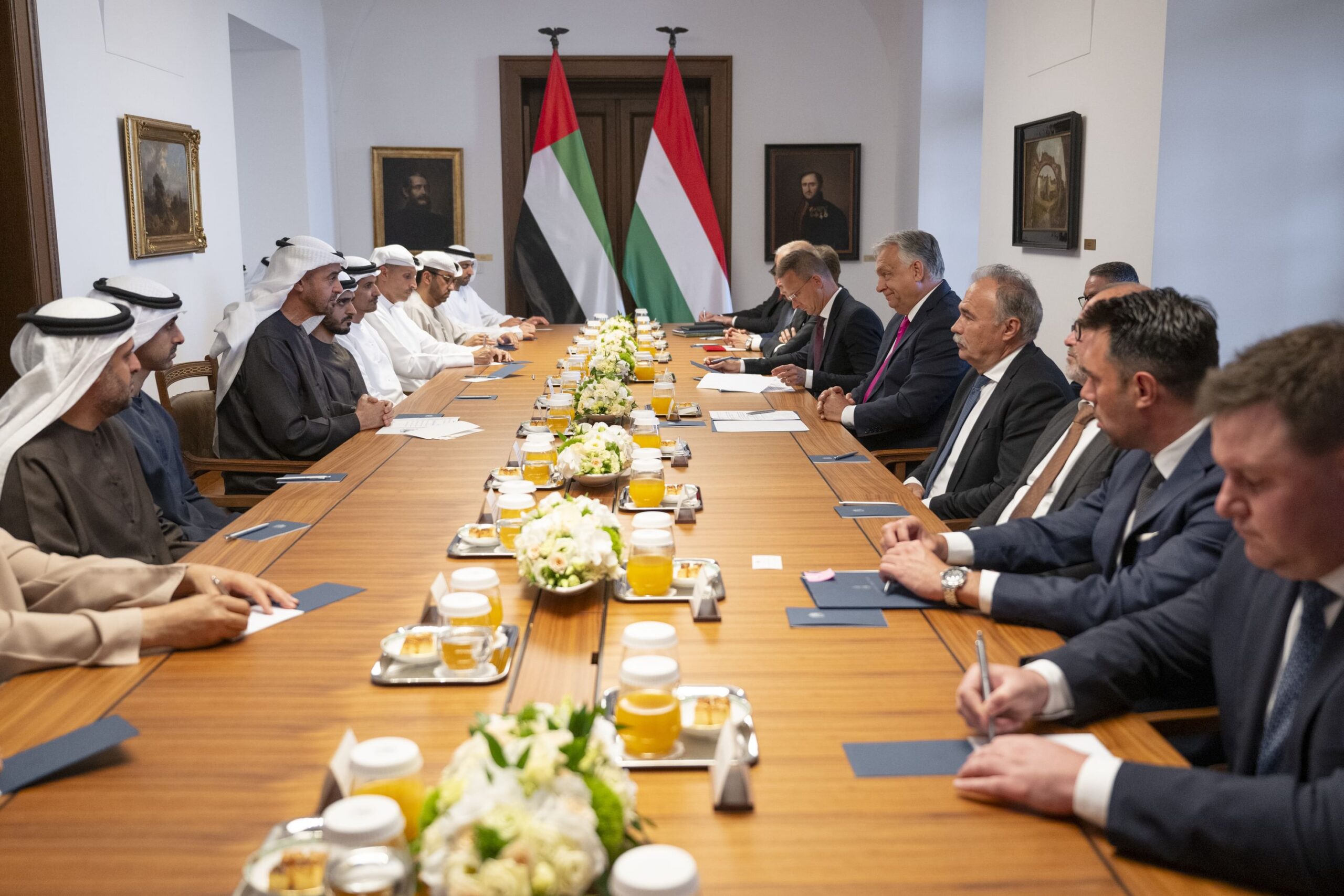 بحث رئيس دولة الامارات العربية المتحدة، صاحب السمو الشيخ محمد بن زايد آل نهيان، مع رئيس وزراء المجر، فيكتور أوربان، العلاقات الثنائية وسبل تعزيزها في مختلف المجالات التي تخدم التنمية في البلدين خاصة الاقتصادية والتجارية والاستثمارية، إضافة إلى مجالات التكنولوجيا والبنية التحتية والطاقة المتجددة وغيرها من القطاعات الحيوية بما يعود بالخير والنماء على البلدين وشعبيهما.