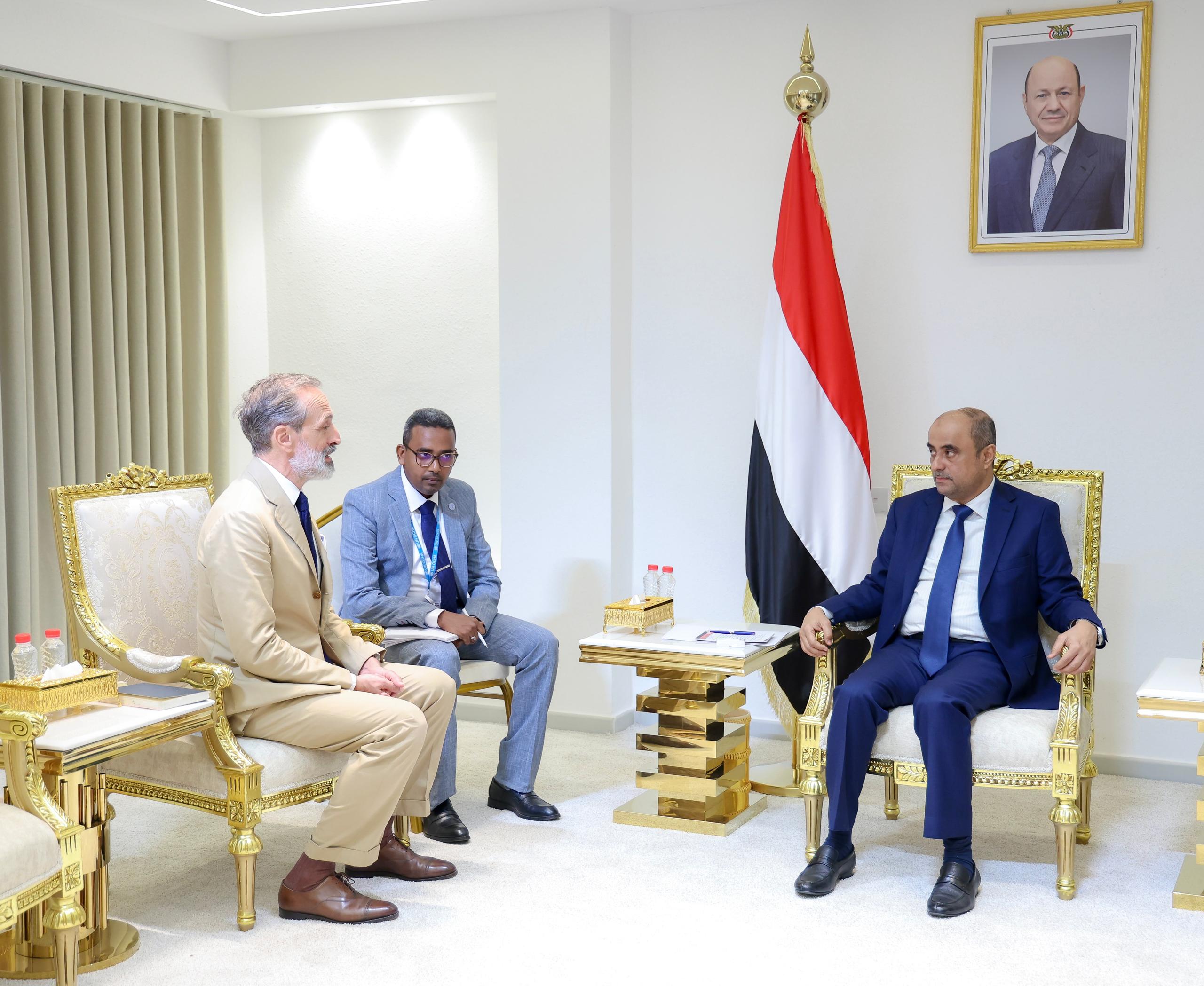 واستعرض دولة رئيس الوزراء، خطط واولويات الحكومة على ضوء التحديات الراهنة خاصة في الجوانب الاقتصادية والخدمية، والدور الذي يمكن ان تقوم به الأمم المتحدة وشركاء اليمن لإسناد جهودها في التخفيف من معاناة المواطنين بما في ذلك وقف تراجع سعر صرف العملة الوطنية.. لافتاً الى الحرب الاقتصادية الممنهجة التي تشنها مليشيات الحوثي الإرهابية وبينها استهداف موانئ تصدير النفط الخام كجزء من استراتيجيتها لإضعاف قدرة الحكومة في تقديم الخدمات الأساسية وتعميق الكارثة الإنسانية القائمة..مؤكداً اهمية دعم المجتمع الدولي بشكل عاجل للحكومة لمواجهة التحديات الراهنة.. منوهاً بهذا الخصوص بالدعم المقدم من الاشقاء في المملكة العربية السعودية ودولة الامارات العربية المتحدة لدعم الحكومة من أجل الوفاء بالالتزامات الحتمية.