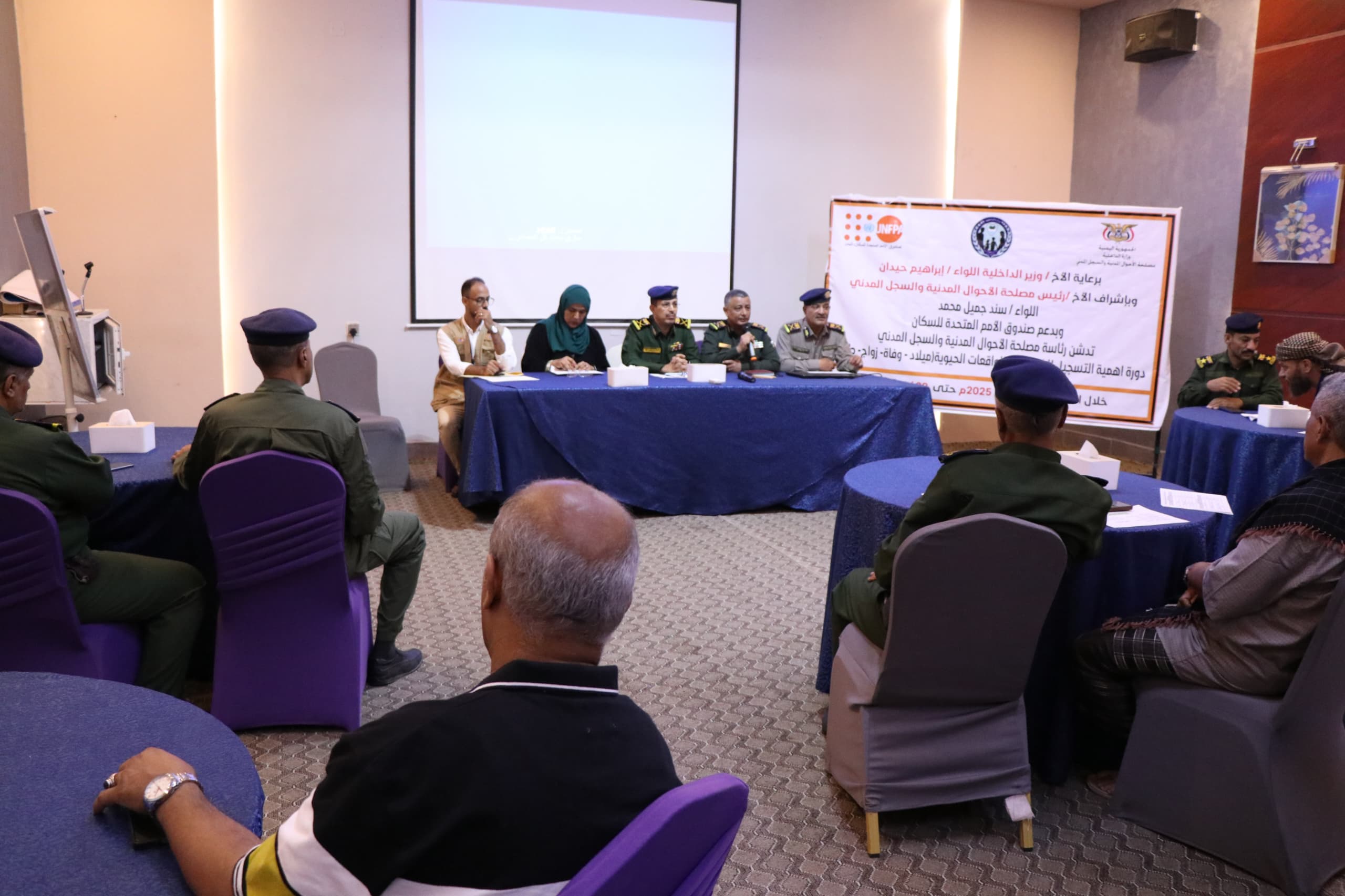 نظمت مصلحة الأحوال المدنية والسجل المدني، اليوم، في العاصمة المؤقتة عدن، دورة تدريبية حول أهمية التسجيل الإلكتروني للواقعات الحيوية (الولادة، الزواج، الطلاق، الوفاة)، بدعم من صندوق الأمم المتحدة للسكان (UNFPA).