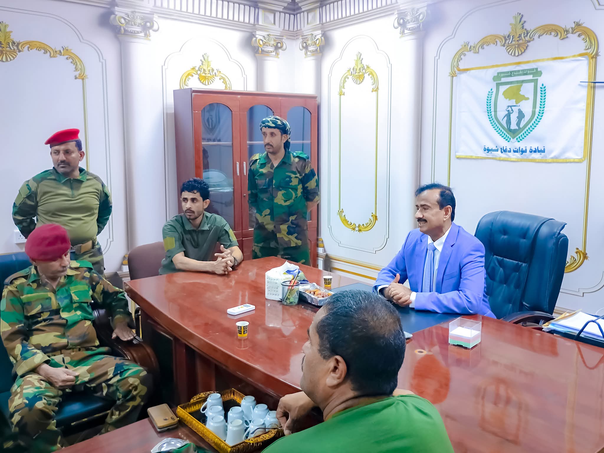 وكان في استقبال المحافظ عوض بن الوزير، القائد العام لقوات دفاع شبوة، العميد الركن علي صالح الكليبي، وعدد من القيادات العسكرية.