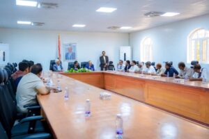 في إطار مساعيه الجادة لترسيخ دعائم العدالة وتعزيز دور القضاء في إرساء سيادة القانون، التقى محافظ محافظة شبوة، رئيس المجلس المحلي، عوض محمد بن الوزير، اليوم، بأعضاء السلطة القضائية في المحافظة، وذلك بهدف تعزيز مستوى التعاون والتنسيق المشترك بين السلطة المحلية والقضائية، والاطلاع على أوضاع الجهاز القضائي واحتياجات منتسبيه.