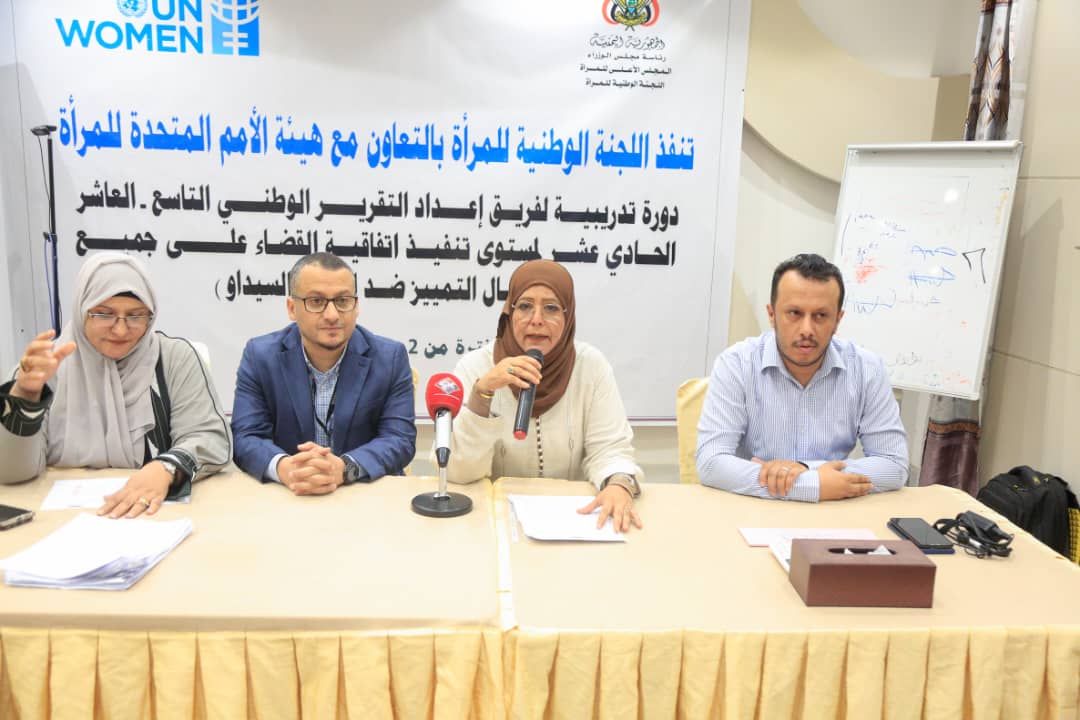 بدأت، اليوم السبت، في العاصمة المؤقتة عدن، الدورة التدريبية لفريق إعداد التقرير الوطني الجامع (التاسع، والعاشر، والحادي عشر) بشأن تنفيذ اتفاقية القضاء على جميع أشكال التمييز ضد المرأة “سيداو”، والتي تنظمها اللجنة الوطنية للمرأة، بالتعاون مع هيئة الأمم المتحدة للمرأة.